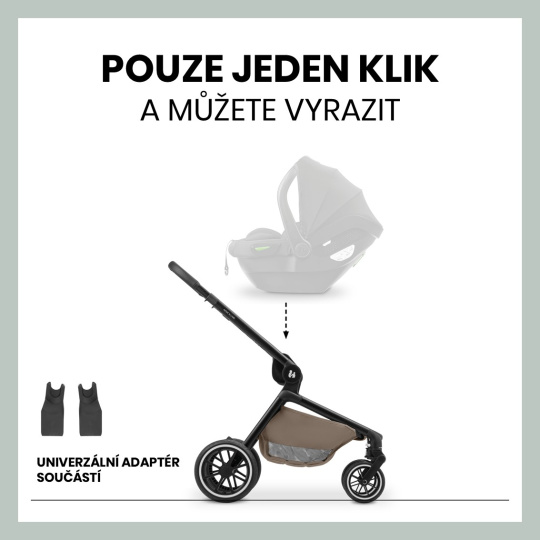 Snadná změna: Jednoduše nacvakněte dětskou autosedačku na kočárek pomocí adaptéru. Je kompatibilní s autosedačkou hauck Drive N Care a mnoha dalšími dětskými autosedačkami.