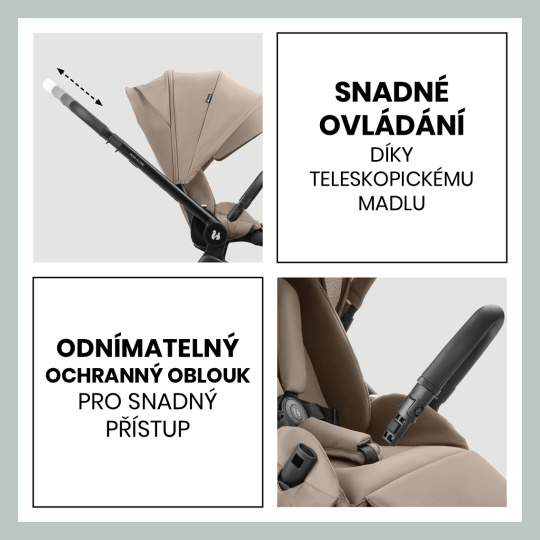 SNADNÉ OVLÁDÁNÍ // Díky výškově nastavitelné teleskopické rukojeti se vám bude kočárek MOVE N CARE snadno ovládat a přitom vám poskytne optimální prostor pro nohy. Odnímatelný ochranný oblouk umožní vám a vašemu děťátku snadný přístup ke kočárku.
