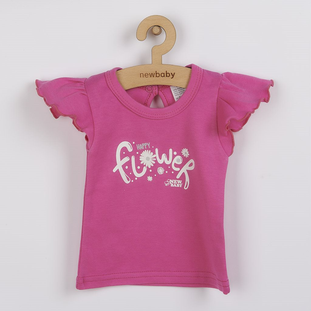 2-dílná kojenecká bavlněná souprava New Baby Happy Flower tmavě růžová