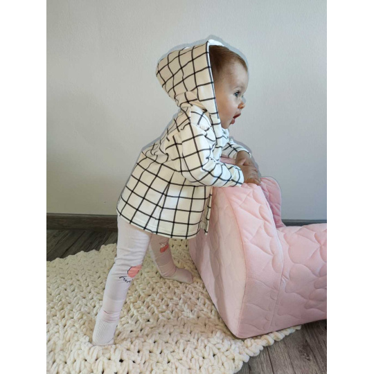 2-dílný komplet pro holčičku české značky New Baby Cool Girls. Komplet se skládá z mikinky a sukýnky. Mikinku Áčkového střihu zdobí praktická kapuce podšitá bavlněnou podšívkou a stále moderní kostkovaný vzor. Zapínání na cvočky po celé délce. Kolový stříh sukýnky zdobí širší pás s gumičkou. Krásný komplet do šatníku malých parádnic. Materiál: 95% bavlna, 5% elastan.