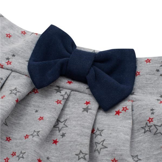 Krásná a praktická 3-dílná holčičí soupravička české značky New Baby Emma. Součástí kojenecké soupravičky je sukýnka, bolerko a čelenka. Roztomilá holčičí sukýnka Áčkového střihu je celopotištěná hvězdičkami s širším lemem v pase s gumičkou. Bolerko s dlouhým rukávem má zapínáni na jeden knoflíček. Stylová čelenka je široká, pružná a skvěle nahradí čepičku v mírně chladném počasí. Soupravička je precizně a kvalitně ušitá a je vyrobená z velmi příjemného materiálu, ve kterém se bude vaše holčička cítit velmi pohodlně. Složení: 97% bavlna, 3% elastan.