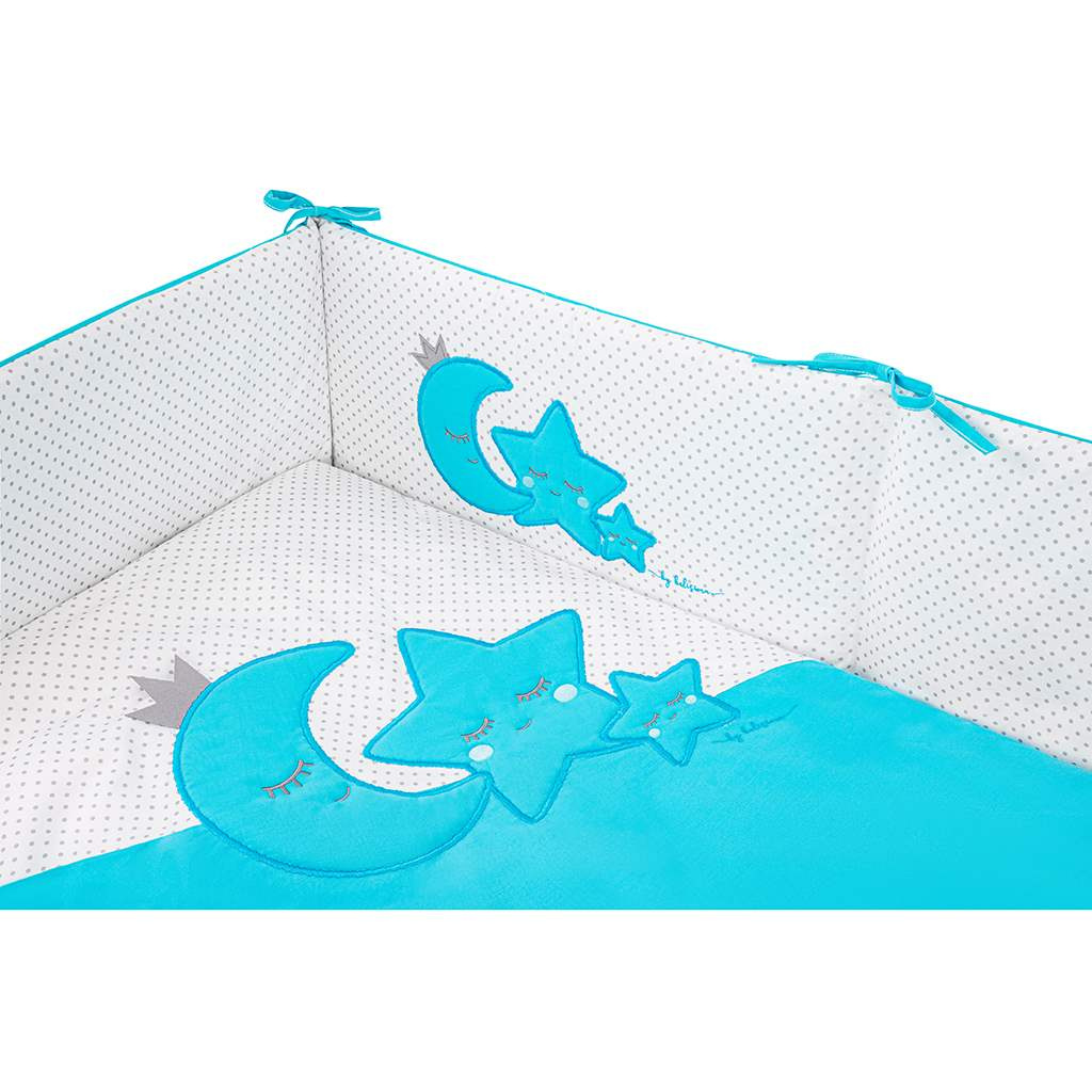 Krásná dětská bavlněná 5-dílná souprava do postýlky Belisima Magic Stars pro miminka. Je vyrobena z měkkého, příjemného materiálu. Souprava obsahuje povlečení na polštářek cca 40x60 cm, povlečení na peřinku cca 100x135 cm, mantinel cca 180 cm, výplň polštářek a peřinka. Materiál 100% bavlna.