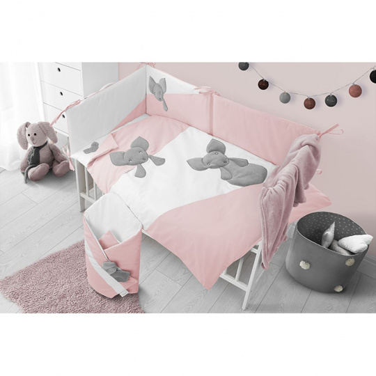 Krásná dětská bavlněná 5-dílná souprava do postýlky Belisima Mouse pro miminka. Souprava je zdobena krásným motivem myšek. Je vyrobena z měkkého, příjemného materiálu. Souprava obsahuje povlečení na polštářek cca 40x60 cm, povlečení na peřinku cca 100x135 cm, mantinel cca 180 cm, výplň polštářek a peřinka. Materiál 100% bavlna.