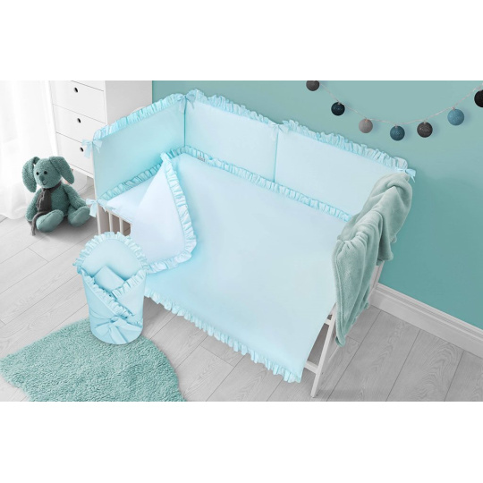 Krásná dětská bavlněná 5-dílná souprava do postýlky Belisima PURE pro miminka. Je vyrobena z měkkého, příjemného materiálu. Souprava obsahuje povlečení na polštářek cca 40x60 cm, povlečení na peřinku cca 100x135 cm, mantinel cca 180 cm, výplň polštářek a peřinka. Materiál 100% bavlna.