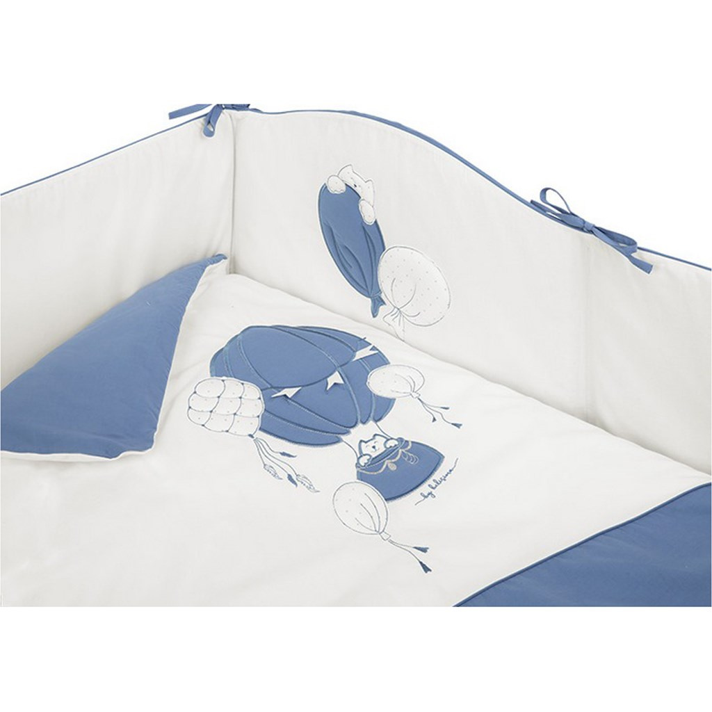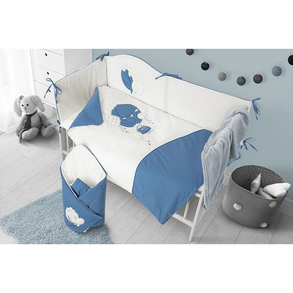 Krásná dětská bavlněná 6-dílná souprava do postýlky Belisima Ballons pro miminka. Souprava je zdobena balónky. Je vyrobena z měkkého, příjemného materiálu. Souprava obsahuje povlečení na polštářek cca 40x60 cm, povlečení na peřinku cca 100x135 cm, mantinel cca 180 cm, výplň polštářek a peřinka, nebesa. Materiál 100% bavlna.
