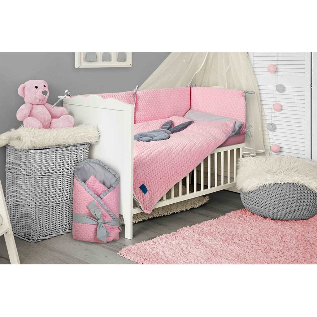 Dětská 6-dílná souprava do postýlky Belisima Králíček pro miminka. Souprava je z jedné strany z úpletového materiálu zdobena 3D vzorem a roztomilým plyšovým králíčkem. Druhá strana je bavlněná. Je vyrobena z měkkého, příjemného materiálu. Složení: vrchní úpletová strana: 50% bavlna, 50% polyester. Spodní strana: 100% bavlna. Souprava obsahuje povlečení na polštářek cca 40x60 cm, povlečení na peřinku cca 90x120 cm, mantinel cca 180 cm, výplň: polštářek, peřinka a nebesa. Nebesa: 150x200 cm.