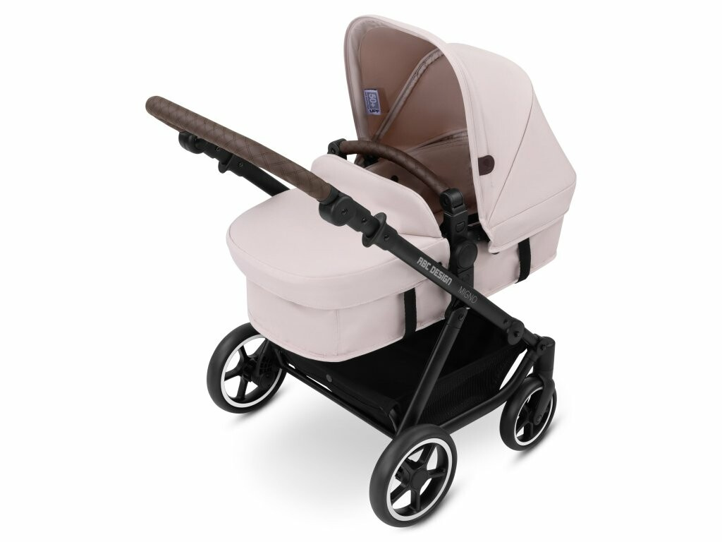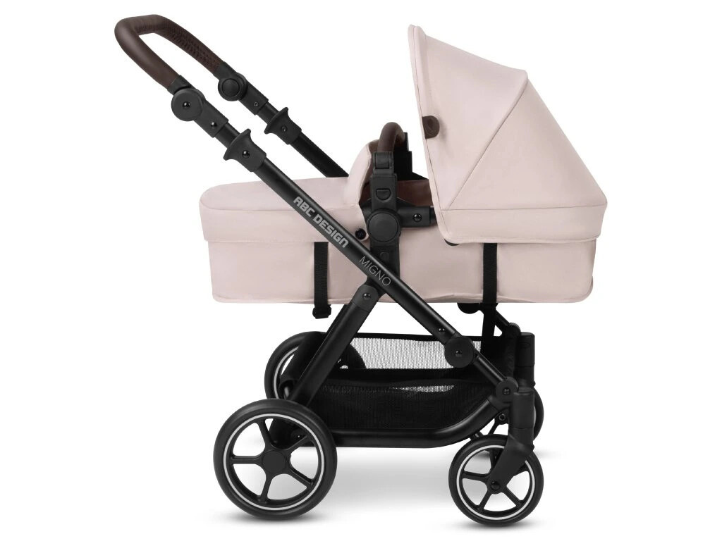 Kočárek Migno se hravě vyrovná velkým kočárkům jak v kvalitě, tak i ve funkčnosti a nabízí vše, co si jen děti mohou přát. Stejně jako u velkých kočárků i kočárek pro panenky je velmi populární díky svému stylovému designu. Sofistikovaný hliníkový rám, vodící rukojeť a přední madlo z vysoce kvalitní imitace kůže a důmyslná kola s bílým pláštěm, to vše dává kočárku elegantní vzhled, který zaujme na první pohled.