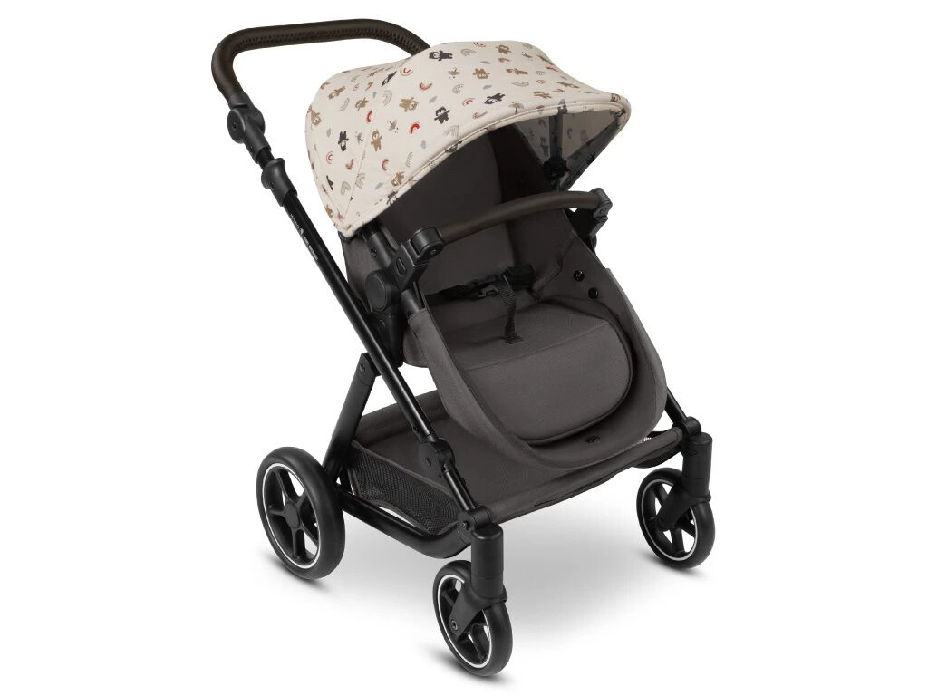 Korbičku lze na praktický podvozek jednoduše nacvaknout stejně jako je tomu u "dospělých" kočárků ABC Design. Jakmile panenka o něco povyroste, je možné korbičku vyměnit za sportovní sezení. Odnímatelné přední madlo umožňuje snadné ukládání a vyndávání panenky. Korbičku i sportovní sezení lze na kočárek připevnit jak ve směru jízdy, tak i směrem k mamince nebo tatínkovi malé panenky. Ideální pro dobrodružství: velký nákupní košík poskytuje dostatek prostoru pro panenčiny nezbytnosti nebo na nákup. Pro snadné převážení lze celý kočárek pro panenky složit.