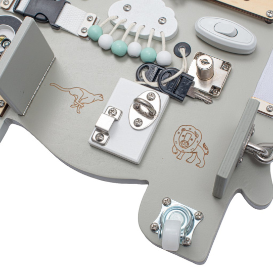 Montessori Activity Board je navržena podle zásad Montessori pedagogiky, která podporuje učení prostřednictvím smyslového vnímání a praktických dovedností. Děti si při hře rozvíjejí jemnou motoriku, trpělivost, logické myšlení a schopnost samostatně řešit úkoly.