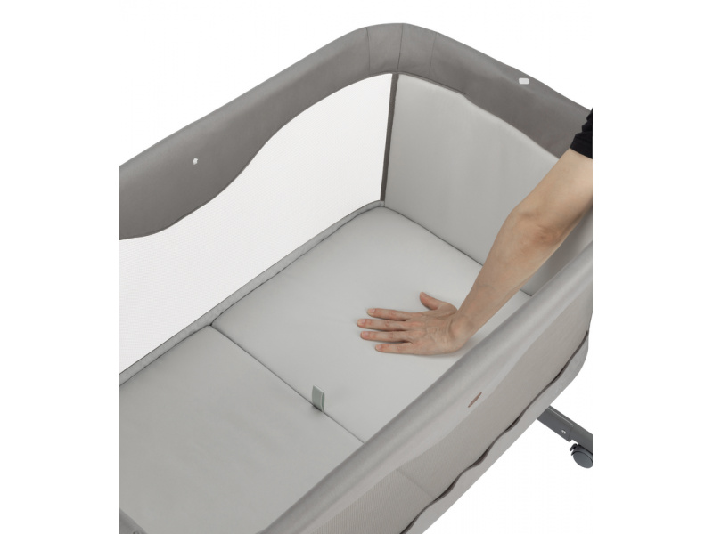 Postýlka Bebeconfort Amara je ideální pro všechny rodiče, kteří chtějí mít své miminko nablízku i během spánku. Postýlka nabízí 3 výškové polohy a možnost úpravy bočnice, abyste miminko mohli mít na dosah ruky vedle své postele. Pokud vaše miminko trápí reflux, můžete využít možnost matraci umístit do lehce šikmé polohy s vyvýšenou horní částí. Postýlka je vybavena kvalitní měkkou matrací. Boční síťované okno zajišťuje větrání postýlky. Díky kolečkům s brzdou se postýlka v bytě snadno přesunuje a můžete tak mít vaše dítě vždy na očích. Postýlku můžete snadno a rychle složit včetně matrace do praktické cestovní tašky a využít ji i na cestách. Snadno snímatelný potah postýlky je možné prát v pračce. Vhodné pro děti od narození do 9 kg (cca do 6 měsíců). Hmotnost: 10,3 kg Rozměry: D 95 x Š 59 V 80-89 cm Matrace: 83 x 50 cm Upozornění: Postýlka je vhodné pouze do doby, než se dítě začne zvedat na kolena a ruce.