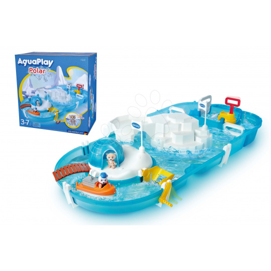 AquaPlay Vodní dráha Polar výzkumná stanice s vodní pumpou na severním pólu s ledním medvědem ve člunu 2 figurky