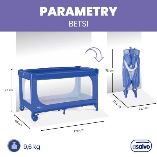 Asalvo BETSI cestovní postýlka s unikátním systémem skládání ULTRA-FAST, blue