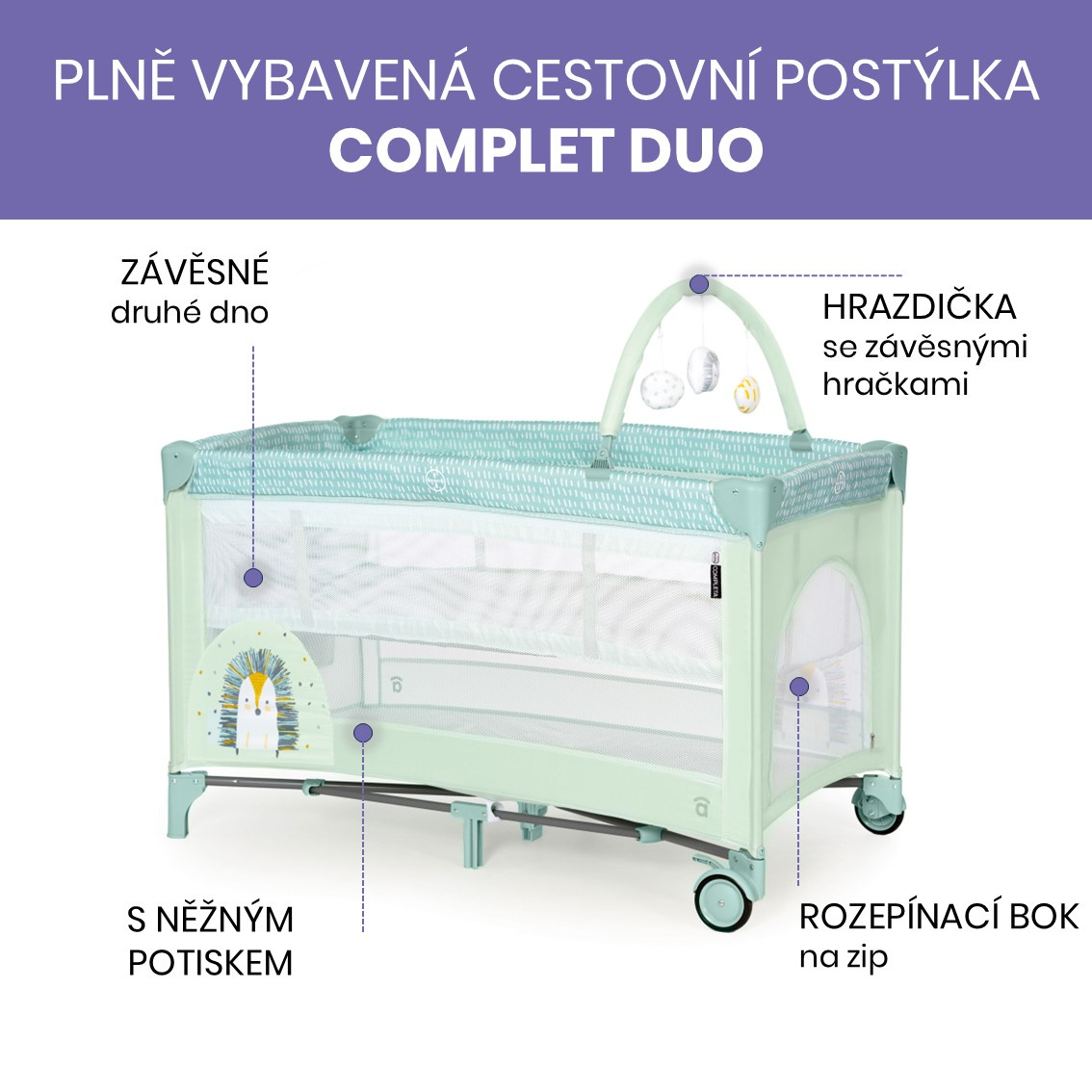 Cestovní postýlka COMPET DUO v sobě kombinuje bezpečnost a praktický design.