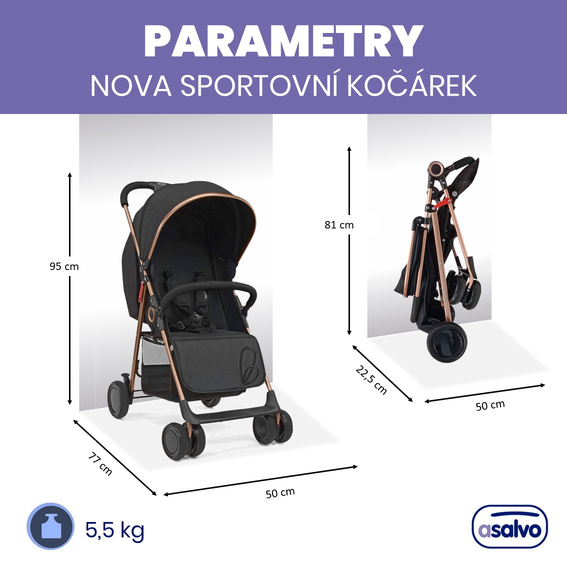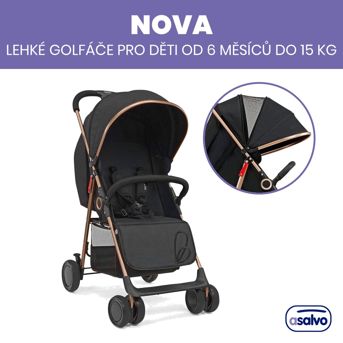 Asalvo NOVA sportovní kočárek 0m-15kg, GOLDEN