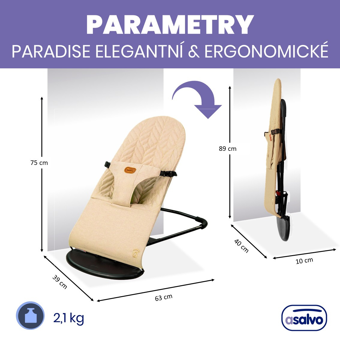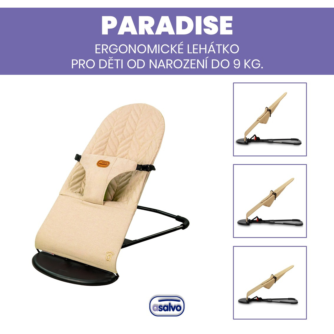 Ergonomické lehátko ASALVO PARADISE je vhodné k odpočinku pro děti od narození do 9 kg.