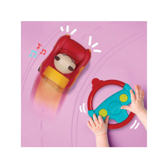Autíčko pro nejmenší řidiče a řidičky má jednoduché ovládání s pomocí dálkového ovladače se třemi tlačítky. Jedním tlačítkem se ovládá jízda dopředu, druhým tlačítkem otáčení o 360°. Po zmáčknutí řidiče v podobě pandy se ozvou 4 legrační zvuky. Baterie 4xAA v autě a 2xAAA v ovladači nejsou součástí balení. Vhodné pro děti od 2 let.