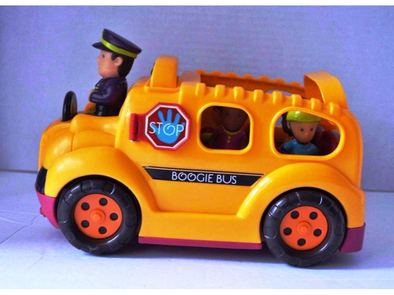 Nastupovat, školní autobus vyráží na cestu! Zmáčknutím řidiče autobus nastartujete, autobus zatroubí, rozsvítí světla a rozjede se. Zadní dveře se otevírají, čtyři cestující postavičky je možné z autobusu vyndat. Baterie 3×AA jsou součástí. Rozměry: 23,5×12×13,3 cm. Vhodné od 18 měsíců do 5 let.