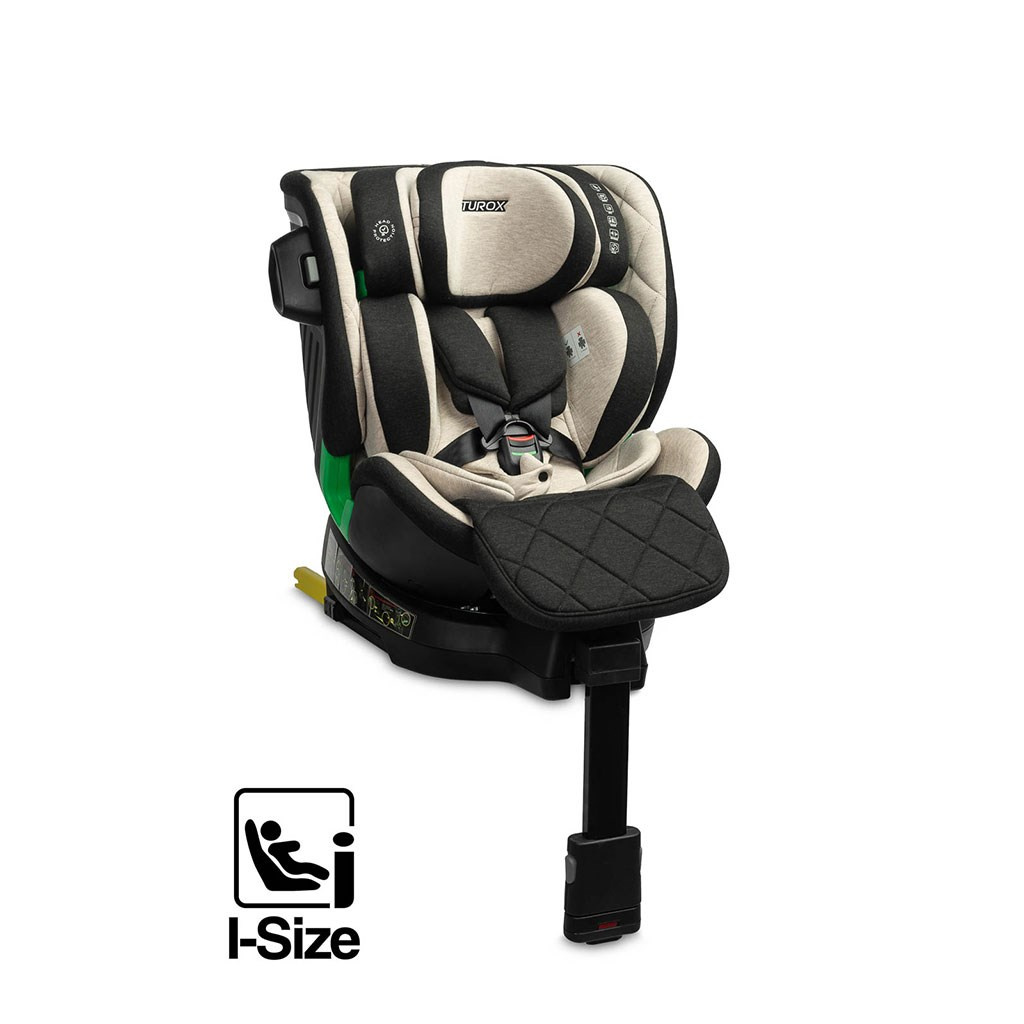 Caretero Turox je autosedačka pro děti od 40 cm do 150 cm výšky s možností plného otáčení a stabilizační nohou. Tato autosedačka splňuje homologaci I-SIZE. Autosedačka Turox poskytuje nejvyšší standard bezpečnosti a pohodlí pro vaše dítě při cestování. Autosedačka je vhodná pro děti od prvních měsíců života až do doby, kdy již autosedačku nepotřebují, tj. do dosažení výšky 150 cm. Montáž autosedačky je rychlá a snadná a hodí se do každého vozidla s úchyty ISOFIX. Sedačku lze otáčet o 360 stupňů, což zaručuje pohodlné umístění dítěte v sedačce. Špičkový komfort pro nejmenší cestující zajišťuje pohodlná vložka s nastavitelnou opěrkou hlavy. Čalounění je vyrobeno z polyesterové tkaniny s příměsí bambusu - má vysoké antibakteriální vlastnosti a umožňuje přirozenou cirkulaci vzduchu. Díky osmistupňovému nastavení opěrky hlavy a sadě vložek lze sedačku dokonale přizpůsobit výšce dítěte a zajistit správnou oporu pro oblast krku a hlavy. Sedačka má 5 stupňů náklonu v poloze po i proti směru jízdy. Pětibodová spona bezpečnostních pásů je vybavena zvukovým signálem, který začne pípat, když se pásy uvolní. Další funkcí je překrytí SIP (Side Impact Protection), které je umístěno na boku sedačky a zaručuje vyšší bezpečnost v případě kolize na silnici.