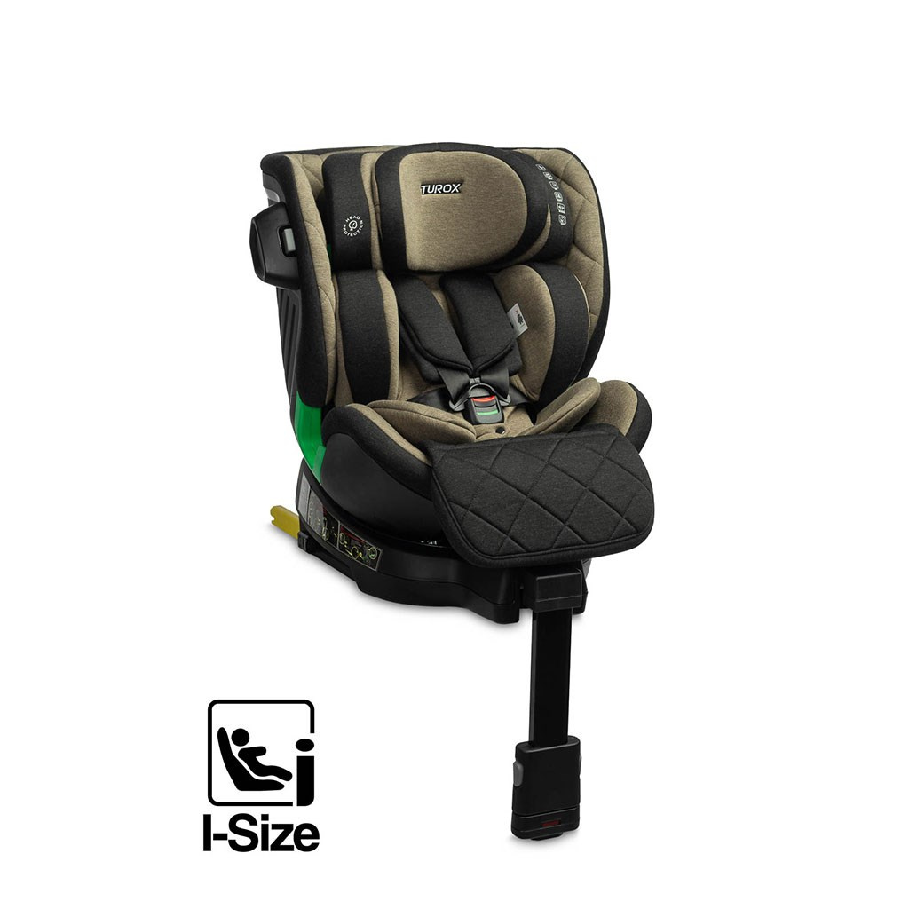 Caretero Turox je autosedačka pro děti od 40 cm do 150 cm výšky s možností plného otáčení a stabilizační nohou. Tato autosedačka splňuje homologaci I-SIZE. Autosedačka Turox poskytuje nejvyšší standard bezpečnosti a pohodlí pro vaše dítě při cestování. Autosedačka je vhodná pro děti od prvních měsíců života až do doby, kdy již autosedačku nepotřebují, tj. do dosažení výšky 150 cm. Montáž autosedačky je rychlá a snadná a hodí se do každého vozidla s úchyty ISOFIX. Sedačku lze otáčet o 360 stupňů, což zaručuje pohodlné umístění dítěte v sedačce. Špičkový komfort pro nejmenší cestující zajišťuje pohodlná vložka s nastavitelnou opěrkou hlavy. Čalounění je vyrobeno z polyesterové tkaniny s příměsí bambusu - má vysoké antibakteriální vlastnosti a umožňuje přirozenou cirkulaci vzduchu. Díky osmistupňovému nastavení opěrky hlavy a sadě vložek lze sedačku dokonale přizpůsobit výšce dítěte a zajistit správnou oporu pro oblast krku a hlavy. Sedačka má 5 stupňů náklonu v poloze po i proti směru jízdy. Pětibodová spona bezpečnostních pásů je vybavena zvukovým signálem, který začne pípat, když se pásy uvolní. Další funkcí je překrytí SIP (Side Impact Protection), které je umístěno na boku sedačky a zaručuje vyšší bezpečnost v případě kolize na silnici.