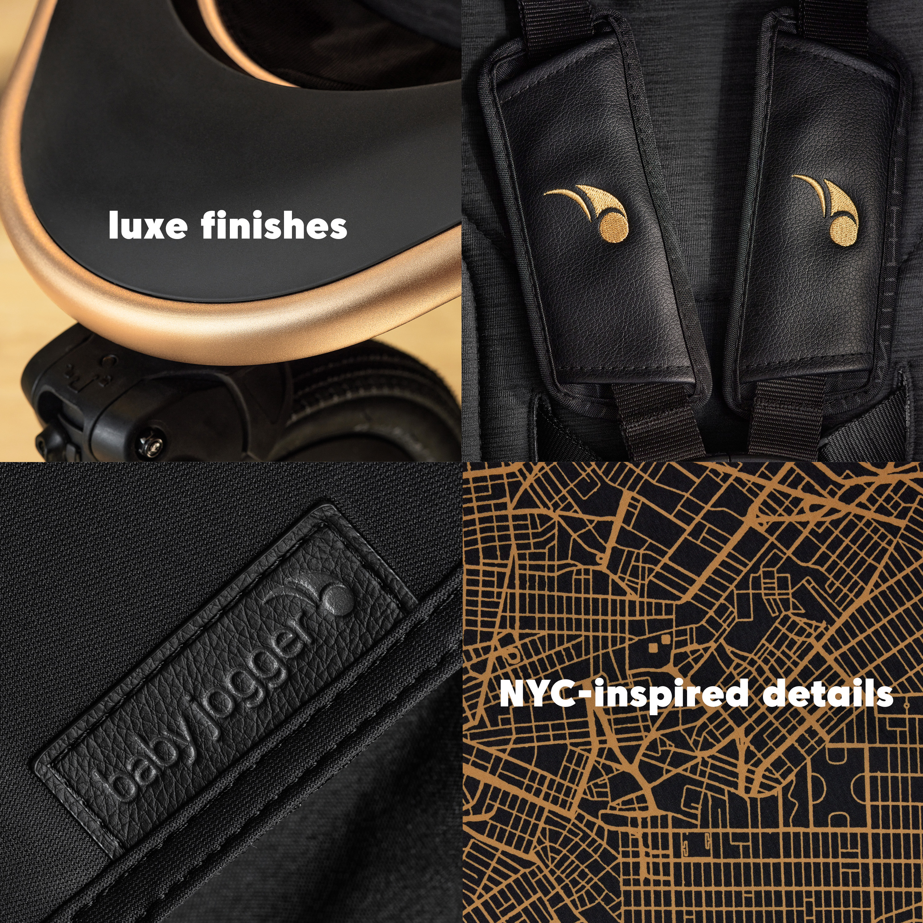 s nejnovějšími trendy, vytváří inovativní, funkční a zároveň pozoruhodně elegantní kočárek. Model Summit™ X3, v designu navrženém Robin Arzon, je doplněn o kožené prvky a jedinečný zlatý vzor na vnitřní straně stříšky kočárku, který byl inspirován pouliční sítí města New York a navržen místním umělcem.