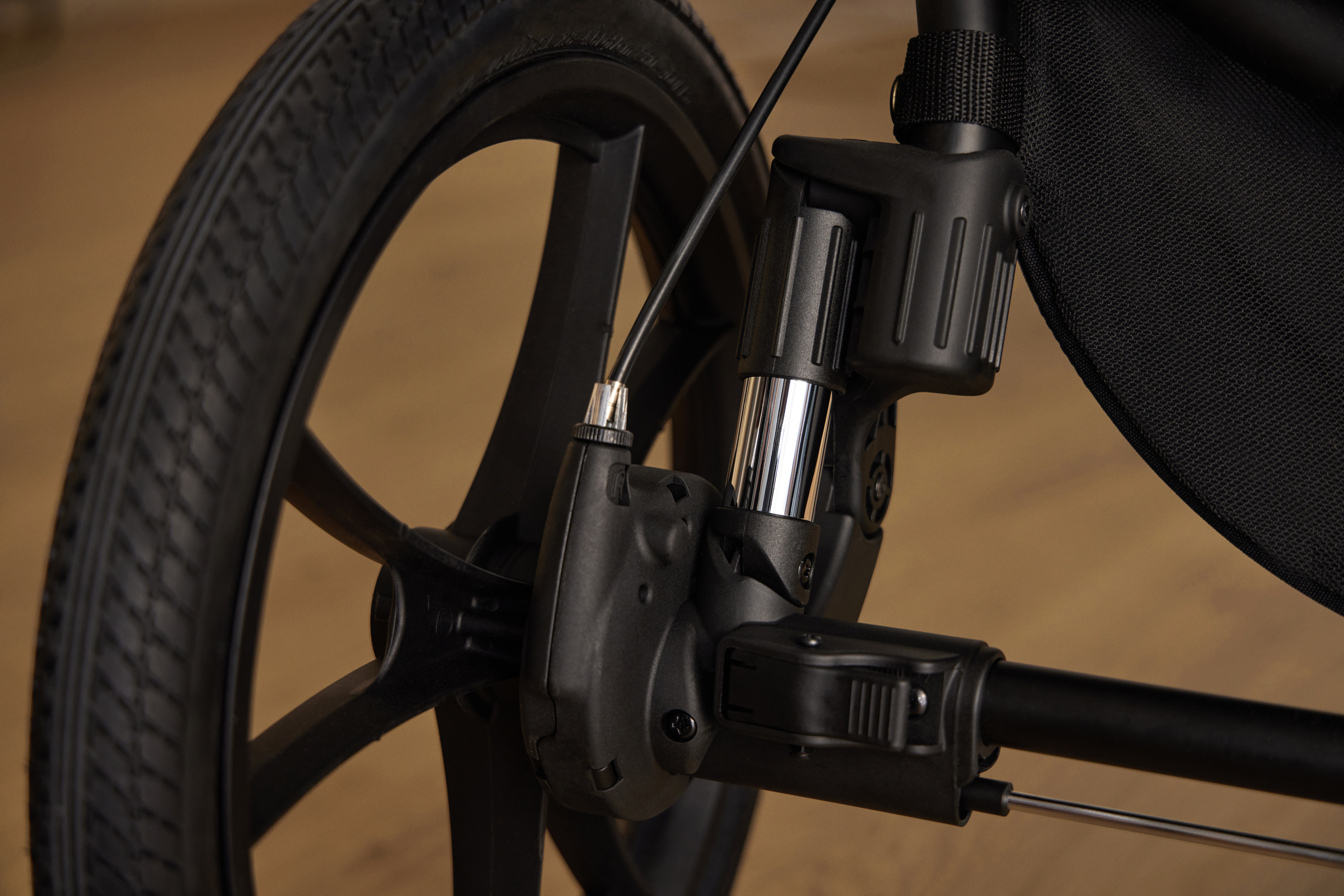 • RUČNĚ OVLÁDANÁ BRZDA pro udržení kontroly nad kočárkem při jízdě, zejména z kopce,