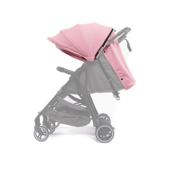 Sedačka je vybavena dvěma koncovkami na bocích konstrukce kočárku, které umožňují připevnit boudu. Pokud chcete boudu připevnit, zasuňte upínací systém do koncovek až na konec. Potom připevněte látkový potah boudy patentkami k bokům sedátka a k opěrce zad, následně zajistěte poutkem, obtočte jej kolem konstrukce a zajistěte.