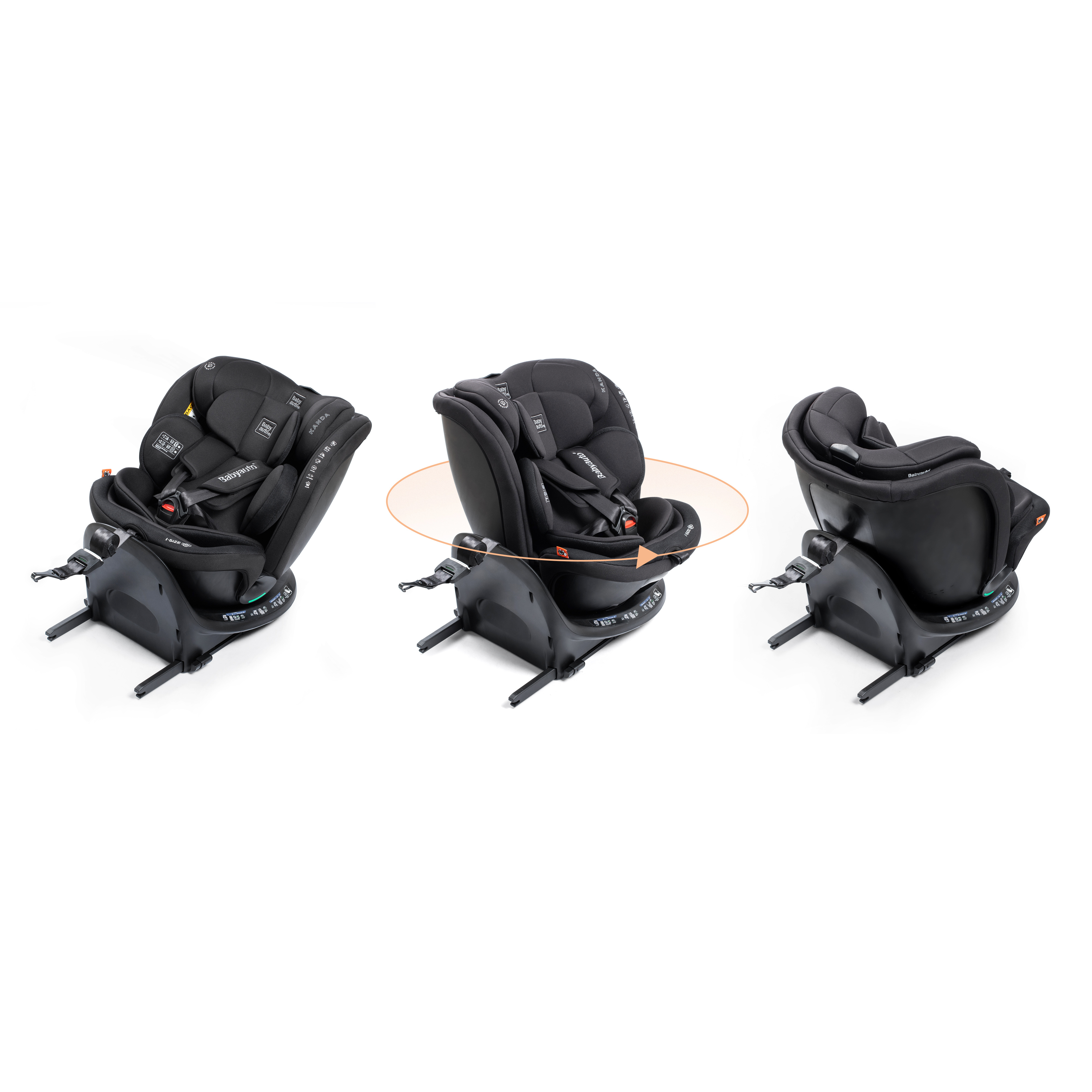 SYSTÉM ROTACE // Systém rotace umožňuje snadnější přístup k děťátku a jeho usazení do sedačky. Pak jednoduše natočíte sedačku proti / nebo po směru jízdy vozidla.