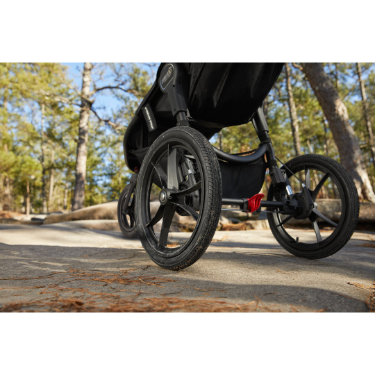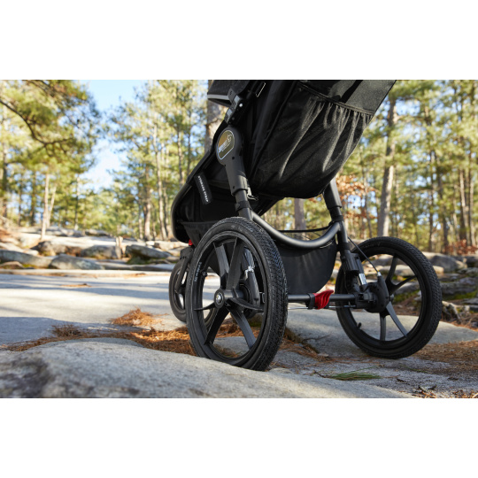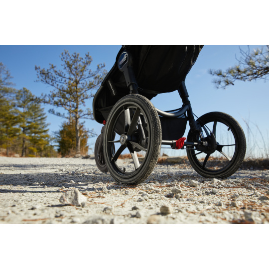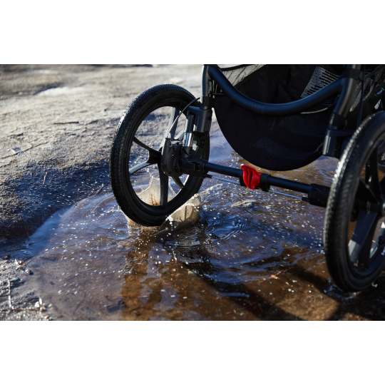 ODPRUŽENÍ VŠECH KOL // Summit ™ X3 má 12 "a 16" vzduchem naplněná gumová kola s odpružením 3x3, díky nimž je jízda po jakémkoli terénu tou nejhladší jízdou, ať už v režimu joggingu nebo při běžné jízdě s kočárkem.