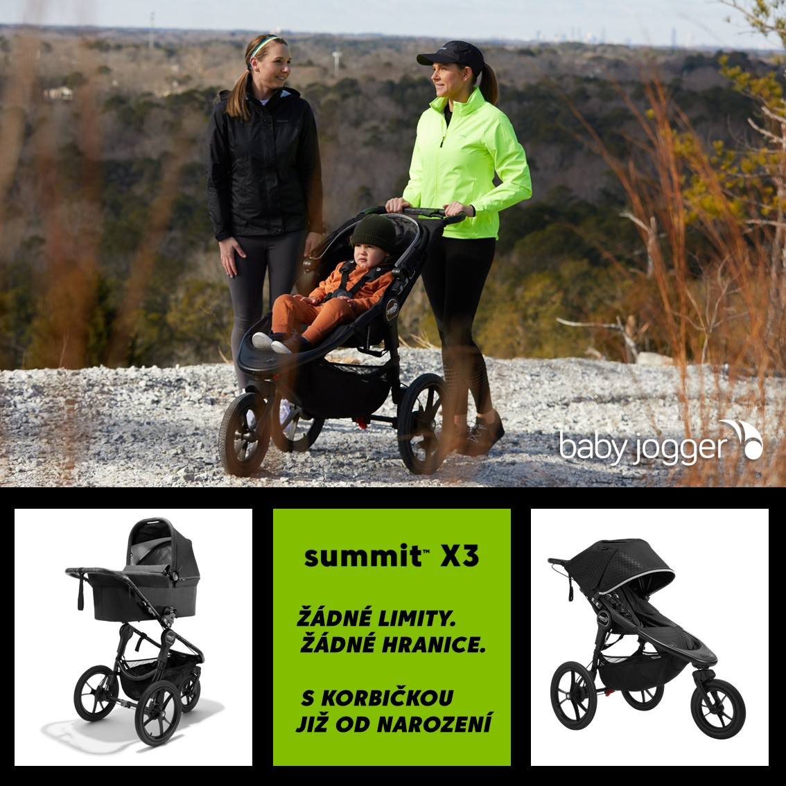 JOGGINGOVÝ KOČÁREK // Nový Summit ™ X3 lze nyní používat jako joggingový kočárek od 9 měsíců do 22 kg pro výjimečný výkon na jakémkoli terénu.