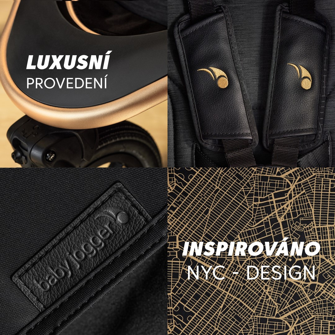 s nejnovějšími trendy, vytváří inovativní, funkční a zároveň pozoruhodně elegantní kočárek. Model Summit™ X3, v designu navrženém Robin Arzón, je doplněn o kožené prvky a jedinečný zlatý vzor na vnitřní straně stříšky kočárku, který byl inspirován pouliční sítí města New York a navržen místním umělcem.