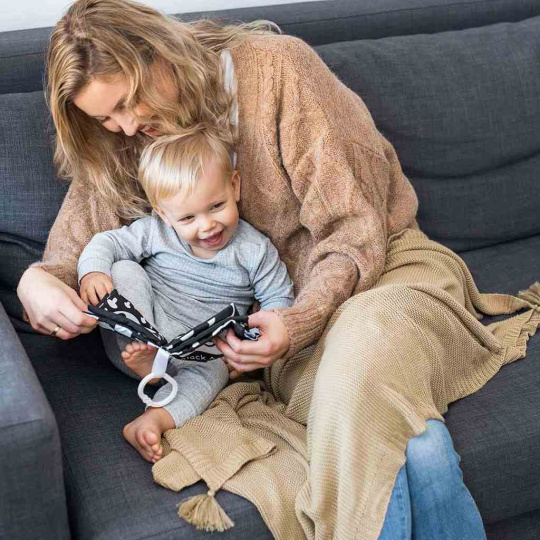 Knížka umožňuje získat nové dovednosti, od procvičování úchopu, přes stimulaci dásní pomocí kousátek s výstupky, až po naučení počítání a poznávání různých povrchů a tvarů. Má jasné, kontrastní barvy, které rozvíjejí zrak, představivost a schopnost soustředit se.