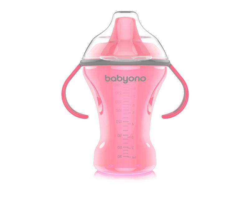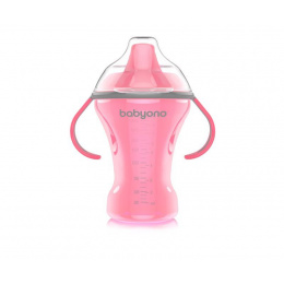 BABYONO Hrnek netekoucí s tvrdým náustkem Natural Nursing 260 ml růžová