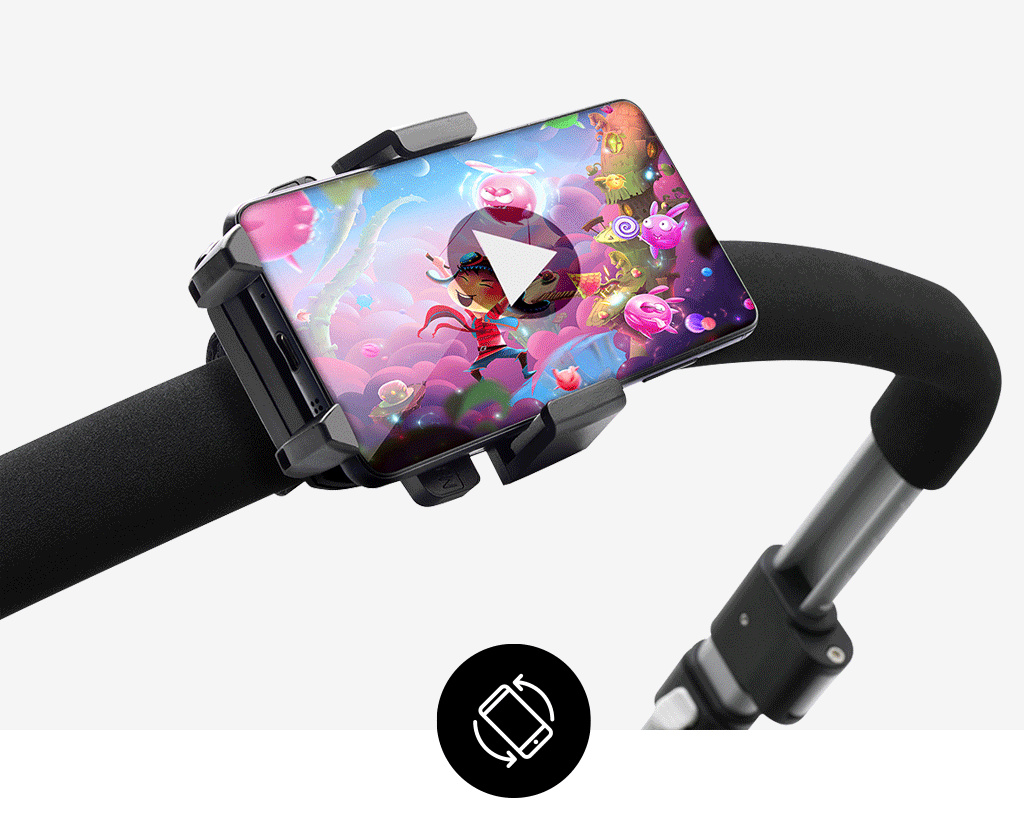Držák na mobilní telefon vám umožní mít svůj telefon pohodlně po ruce a na očích i na procházce se svým děťátkem, ať už posloucháte hudbu nebo telefonujete.
