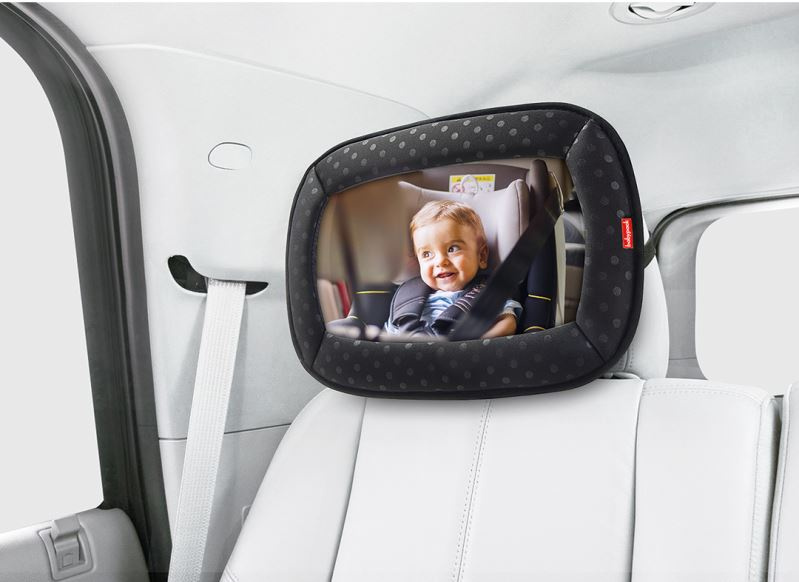 A) Široké zpětné zrcátko s čistým úhlem pro bezpečný kontakt s vaším děťátkem na cestách.