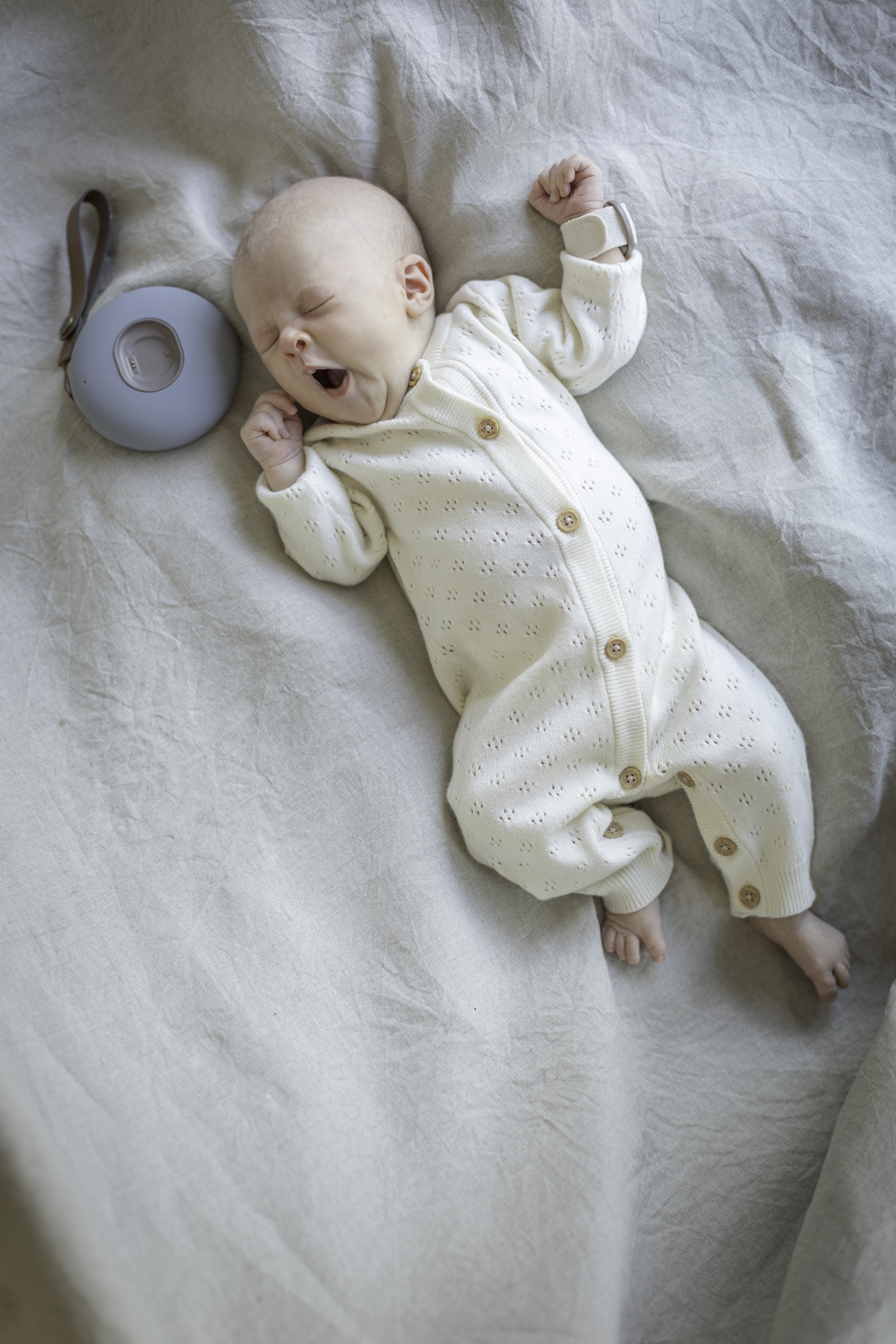 Vše v jednom: dětská chůvička (detekce pláče), informace o potřebách dítěte (teplota kůže, saturace kyslíkem a srdeční frekvence), bílý šum, noční světlo a teplota v místnosti.