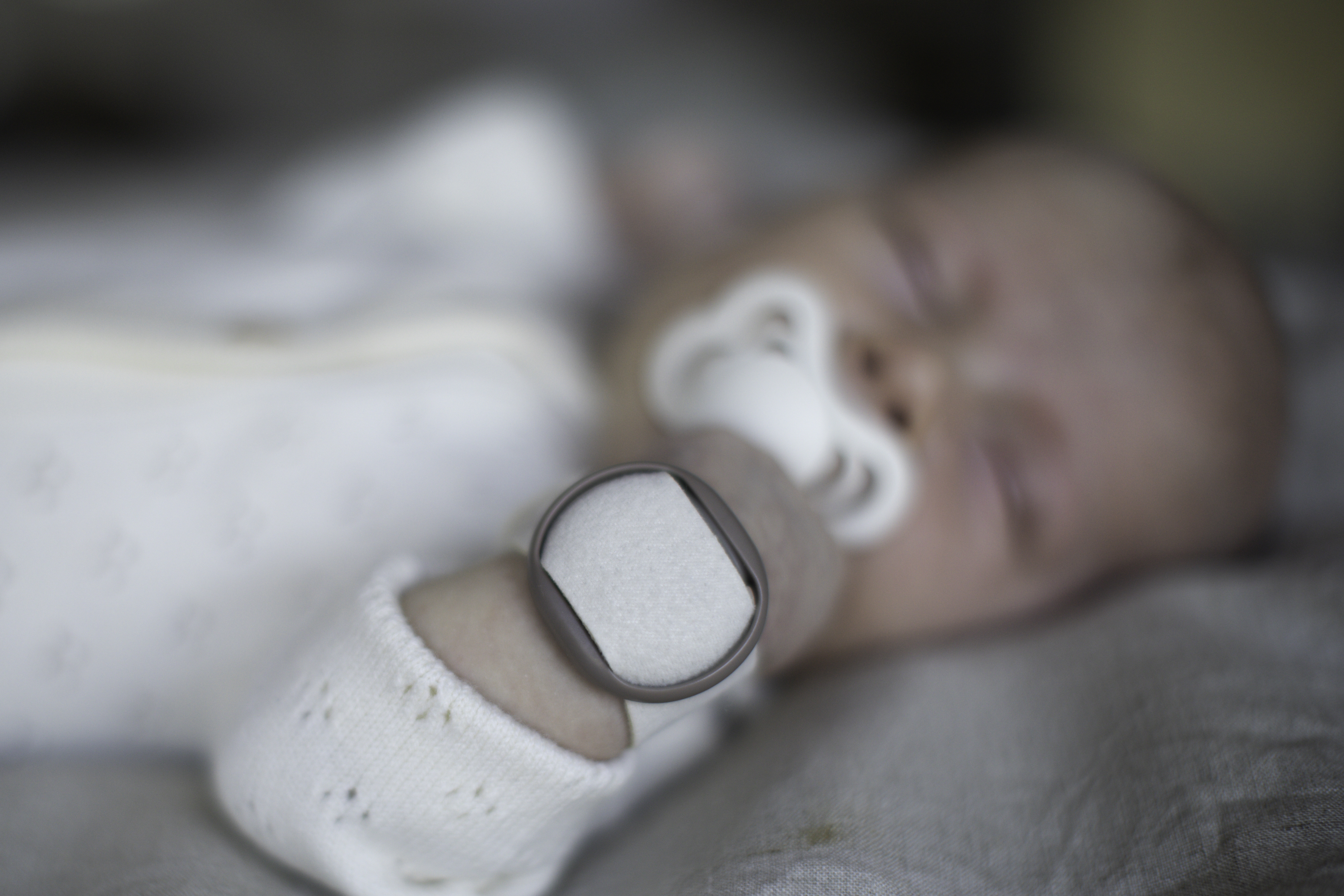 Kontroluje potřeby péče o dítě: Pomocí pohodlného senzoru připevněného na paži nebo noze dítěte se měří informace o péči, jako je saturace kyslíkem, srdeční frekvence a teplota kůže.