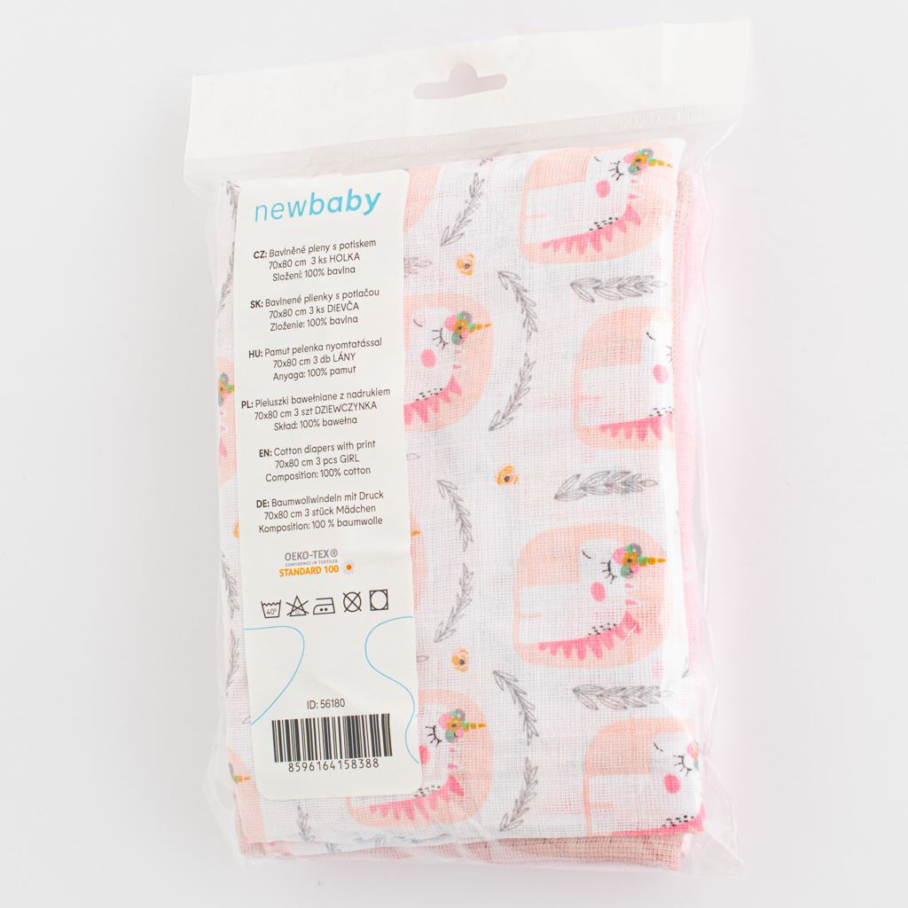 Bavlněné pleny s potiskem New Baby 70x80 cm 3 ks HOLKA