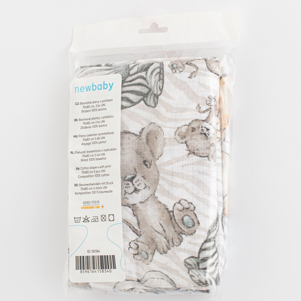 Bavlněné pleny s potiskem New Baby 70x80 cm 3 ks UNI