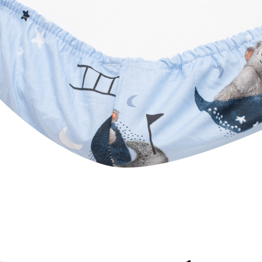 Bavlněné prostěradlo New Baby Teddy bear in space je vyrobeno z hladké a na dotek příjemné bavlněné látky-tkanina. Krásny detský motív, polahodí detským očičkám. Všitá gumička zabraňuje sklouznutí z matrace, zaručuje správné napnutí prostěradla a umožňuje přizpůsobit se jakémukoli tvaru. Prostěradlo je vhodné pro matrace o rozměrech 35 × 75 cm. Prostěradlo je klasické bavlněné, které není elastické a proto má roměry 50x80 cm, aby krásně sedělo na celé matraci i ze spodní strany.
