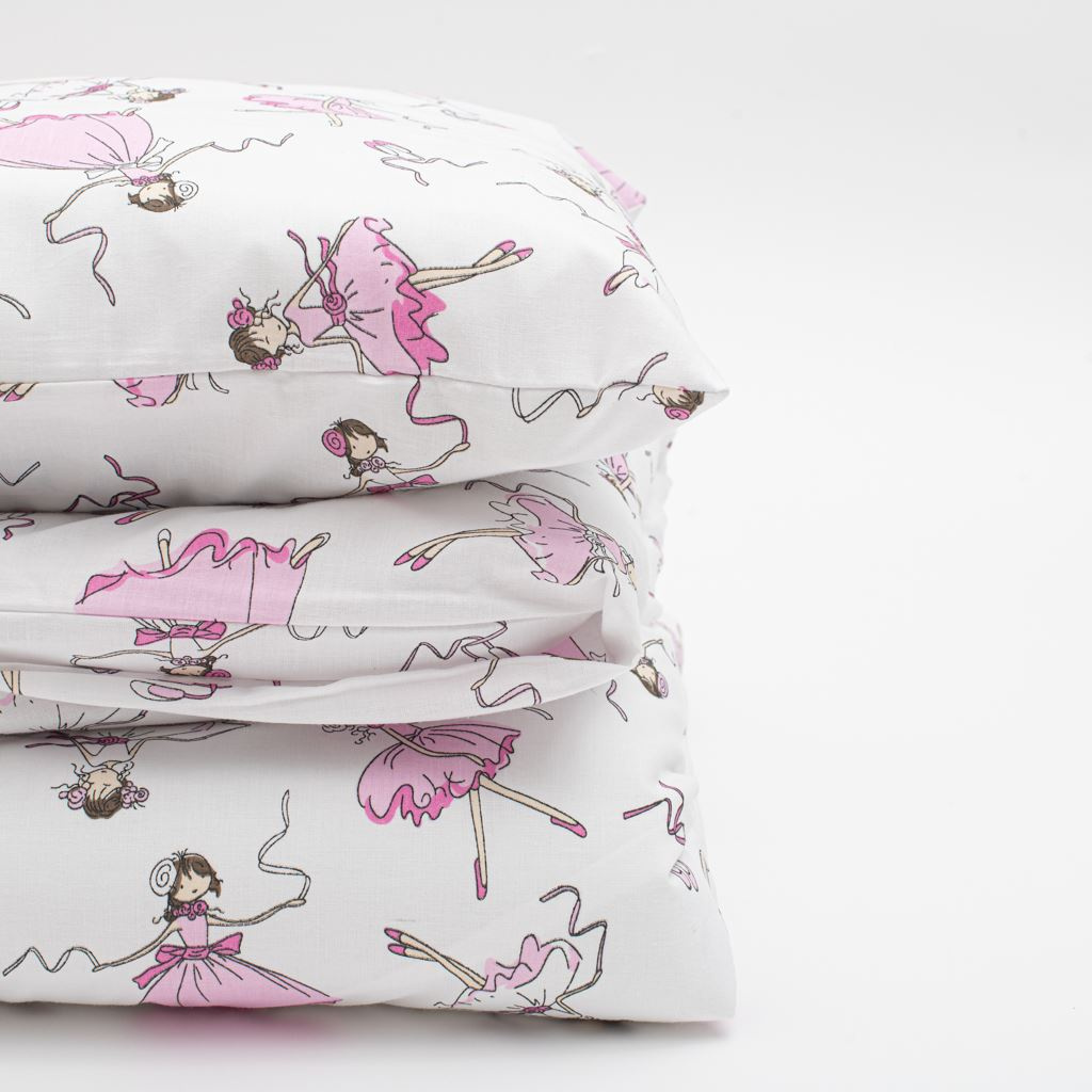 Nádherný bavlněný set do postýlky New Baby Ballerina Bella. Set obsahuje polštářek a peřinku s potiskem pohádkové tančící baletky. Vše je vyplněno antialergickým vláknem. Set je ušitý z vysoce kvalitní bavlny. Bavlněný set luxusně a jemně pohladí a zahřeje pokožku vašeho miminka. Rozměry: polštář: cca 60x40 cm, peřinka: cca 90x120 cm. Složení: povlak 100% bavlna, výplň 100% polyester.