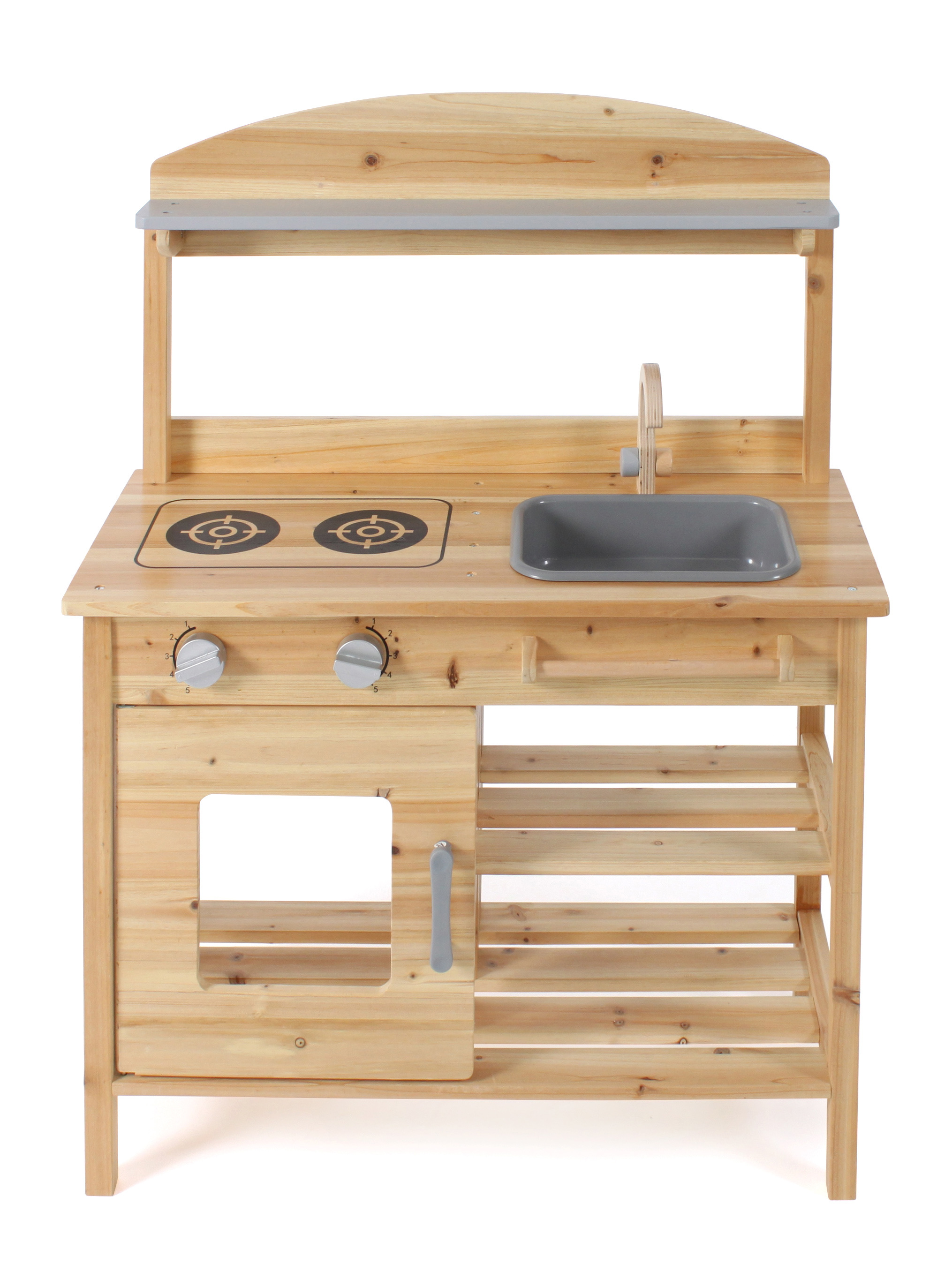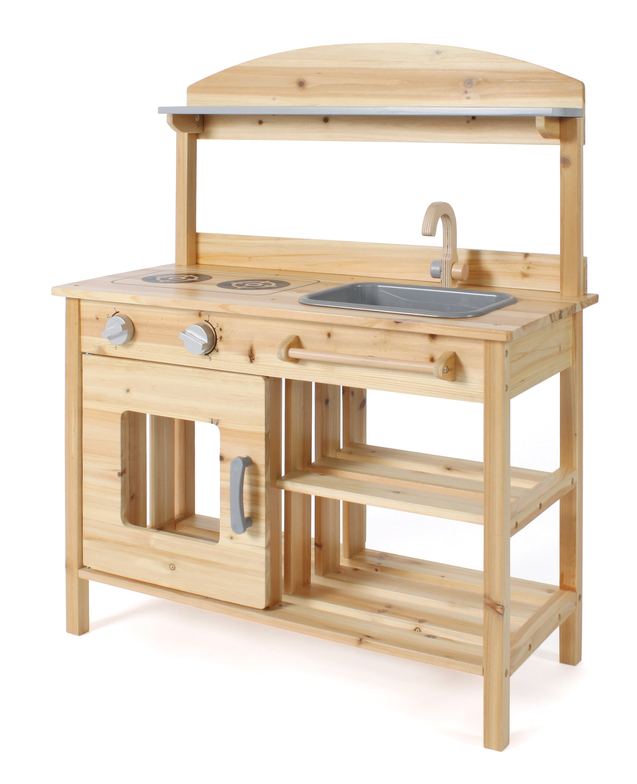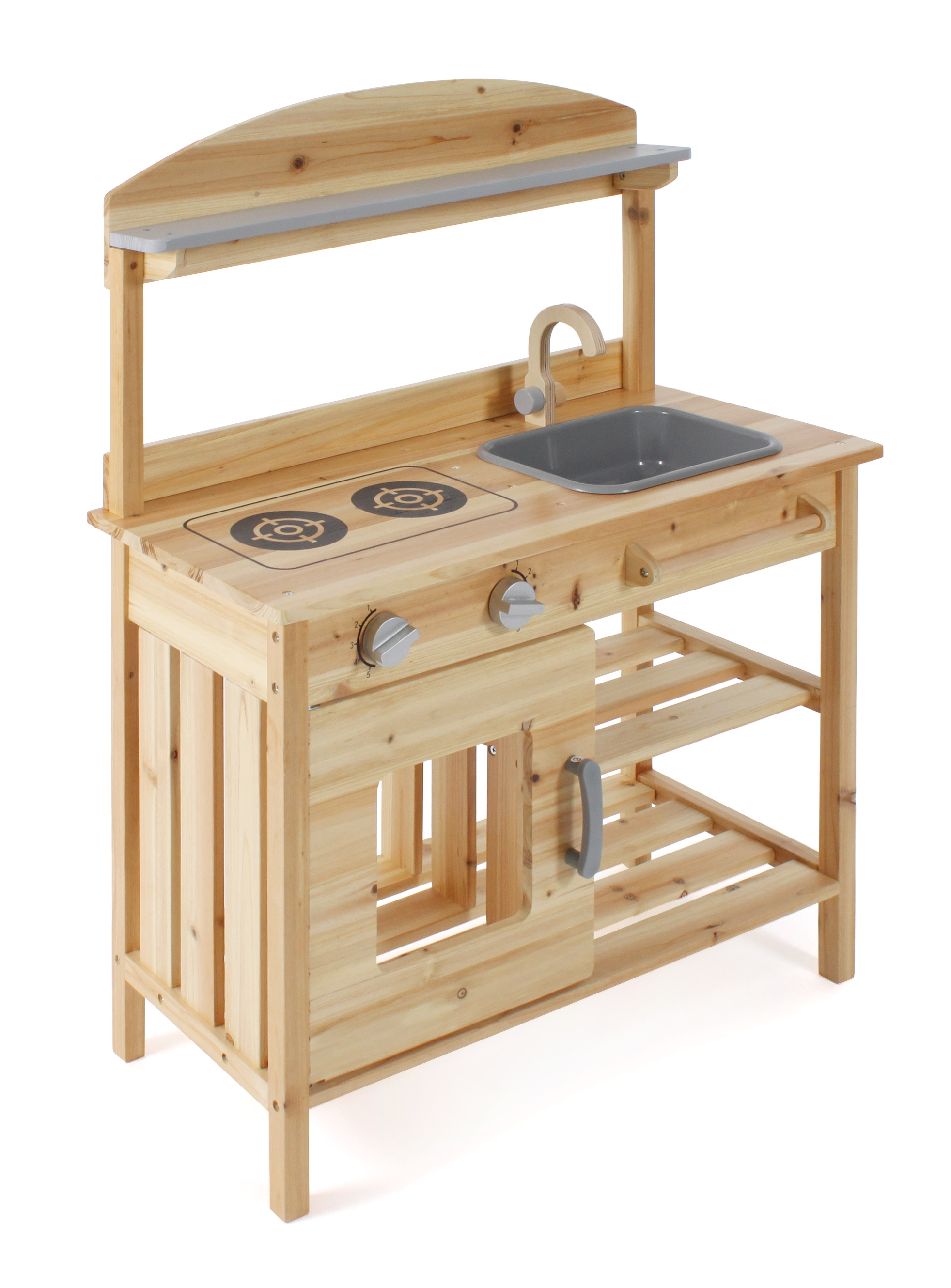| Krásná dřevěná kuchyň z jedlového dřeva, KTEROU JE MOŽNÉ MÍT PO CELOU DOBU NA ZAHRADĚ VENKU. Je vybavena 2 varnými ploténkami, troubou s ovládacími knoflíky a odnímatelným dřezem a baterií. Pod dřezem je tyč na pověčení utěrky. Materiál,rozměry: šířka je 68 cm, výška pultu 84 cm. |