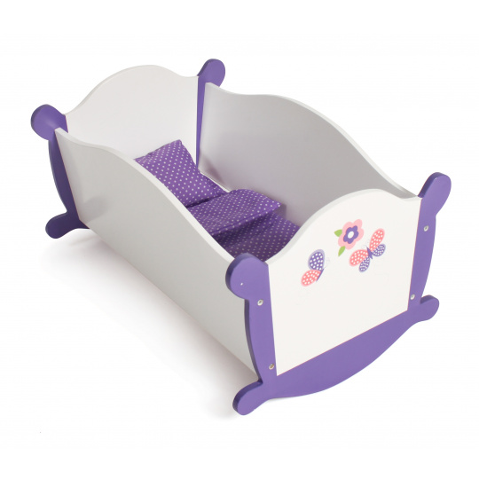 | Dřevěná kolébka pro panenky do velikosti 46 cm. Součástí kolébky je matrace, polštářek a peřinka. Rozměry: 50x34x27,5 cm, váha 2,3 kg. |