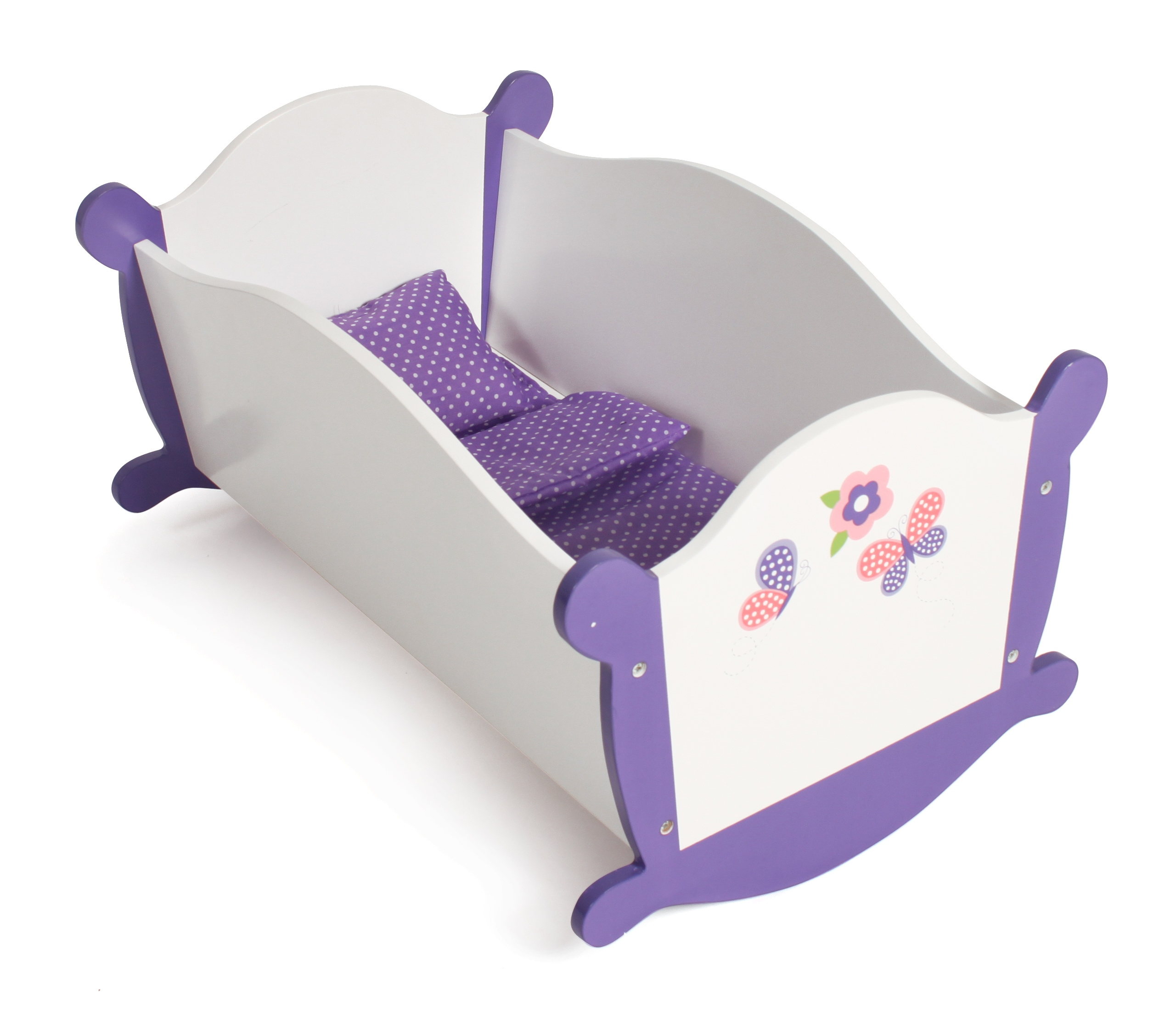 | Dřevěná kolébka pro panenky do velikosti 46 cm. Součástí kolébky je matrace, polštářek a peřinka. Rozměry: 50x34x27,5 cm, váha 2,3 kg. |