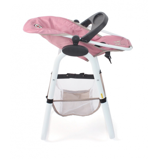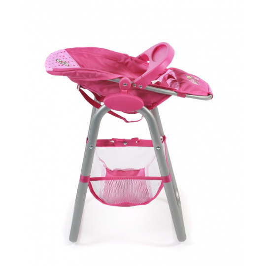 Autosedačka pro panenku do 45 cm. Výrobek obsahuje bryndáček pro panenku ve stejné barvě, přichycený na suchý zip. Pro přenášení je autosedačka vybavena sklopným madlem, které je opatřeno pěnovou gumou.   Rozměry: š31 x v31 x hl 47 cm.