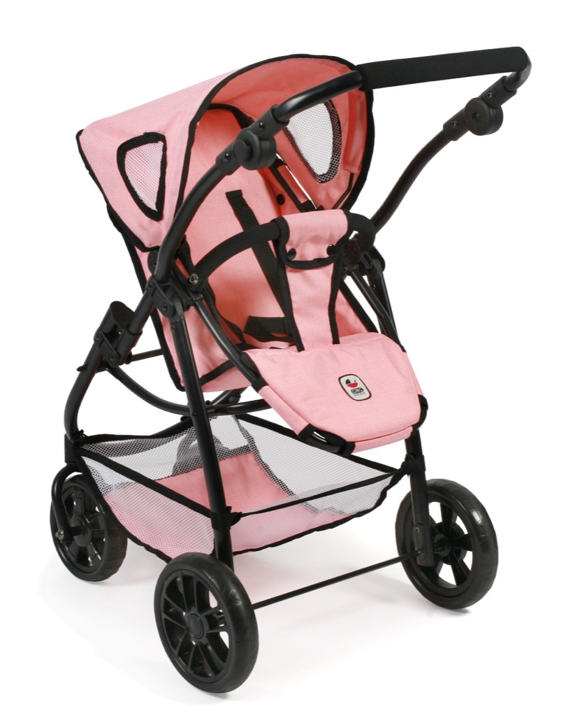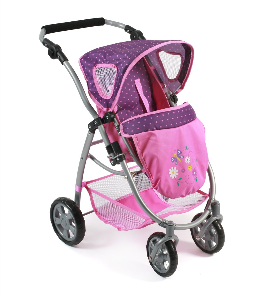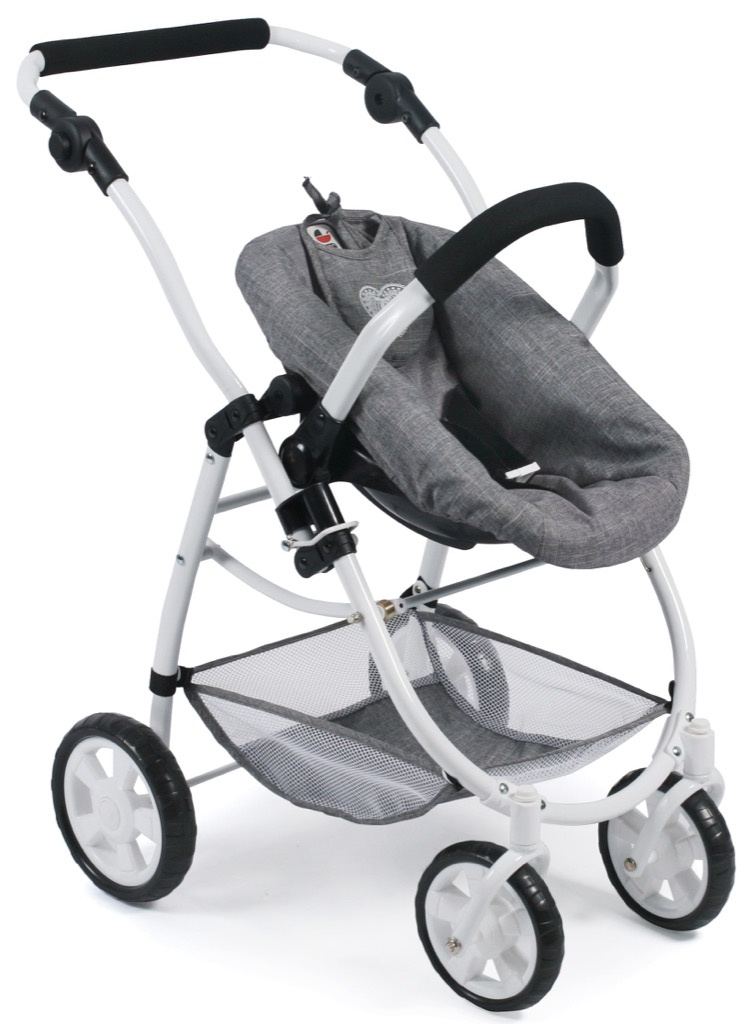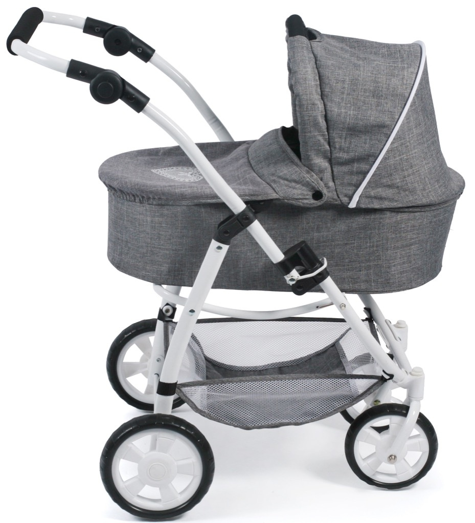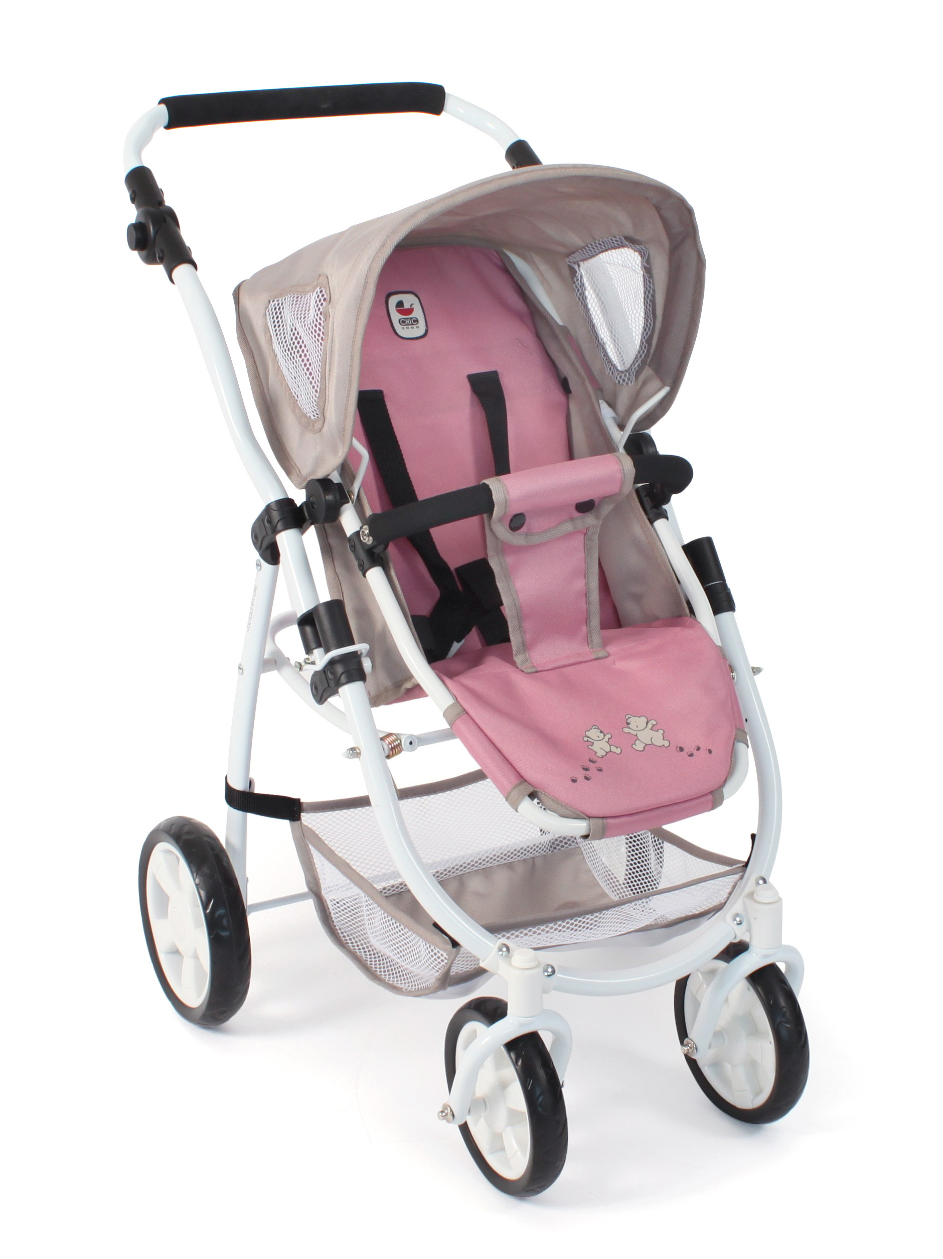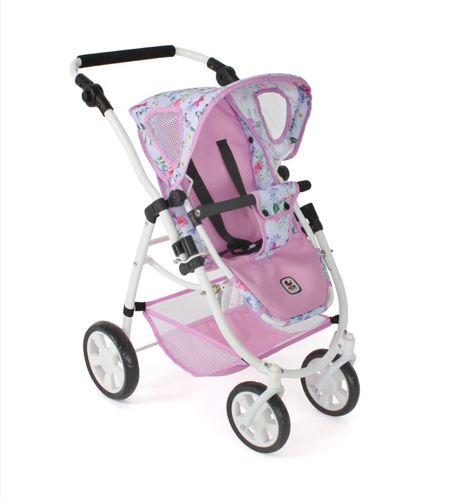 Korbičky lze složit na plocho pro transport nebo uskladnění. Sportovní korba má hrazdu a pás na upínání panenky. V hluboké korbě je slamníček. Korbička je vybavena ušima pro snadné přenášení, autosedačka je vybavena klasickým madlem, jako je to u sedaček pro dětská miminka. Přední kolečka se otáčejí kolem svislé osy. Kočárek má nastavitelnou rukojeť, samozřejmostí je síťka na drobnosti ve spodu kostry.