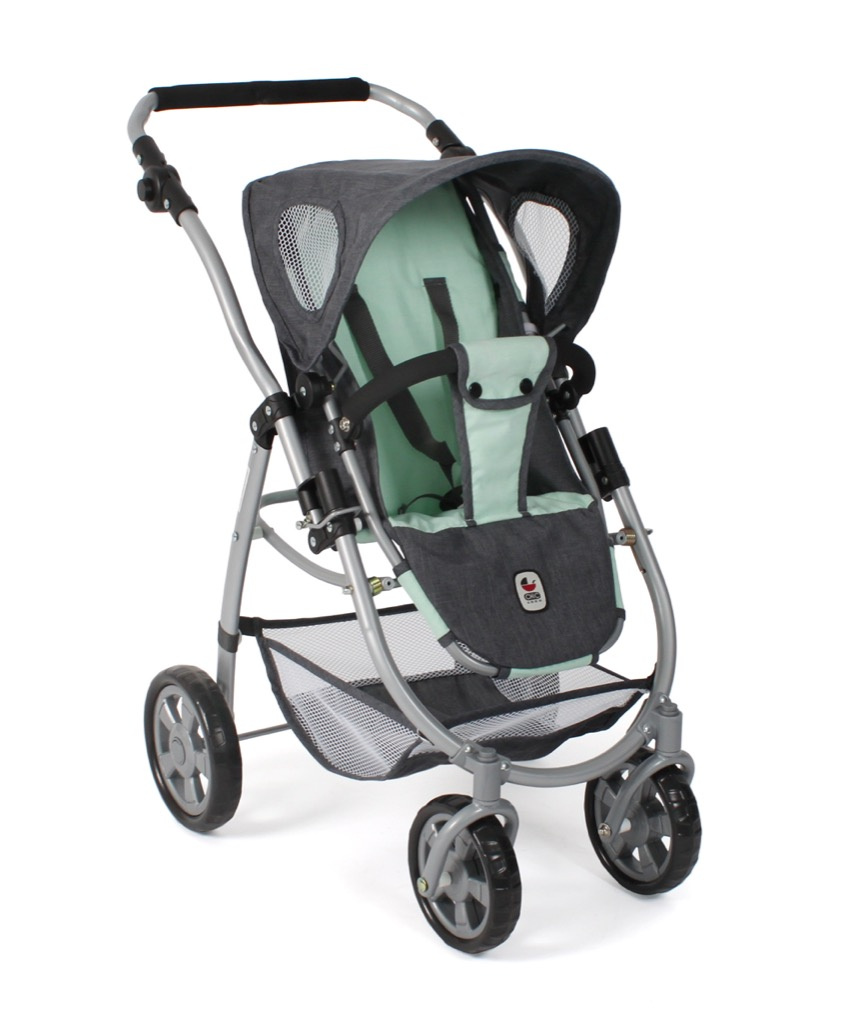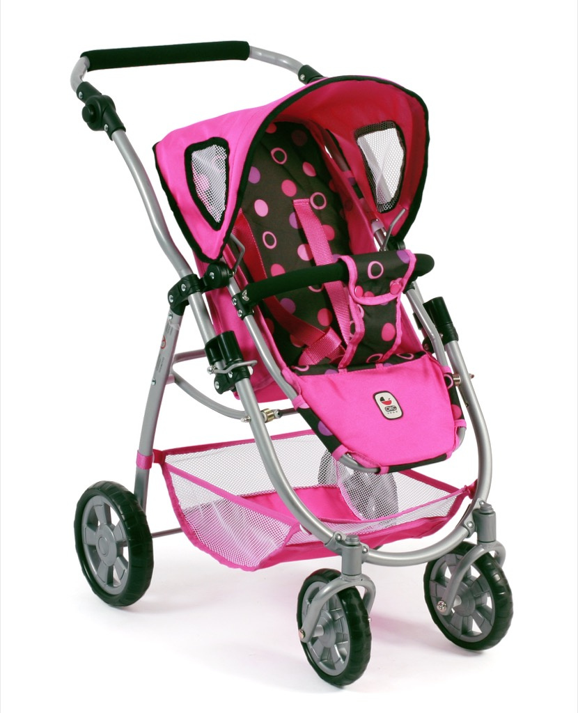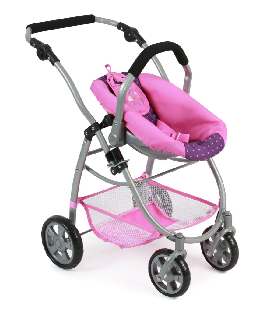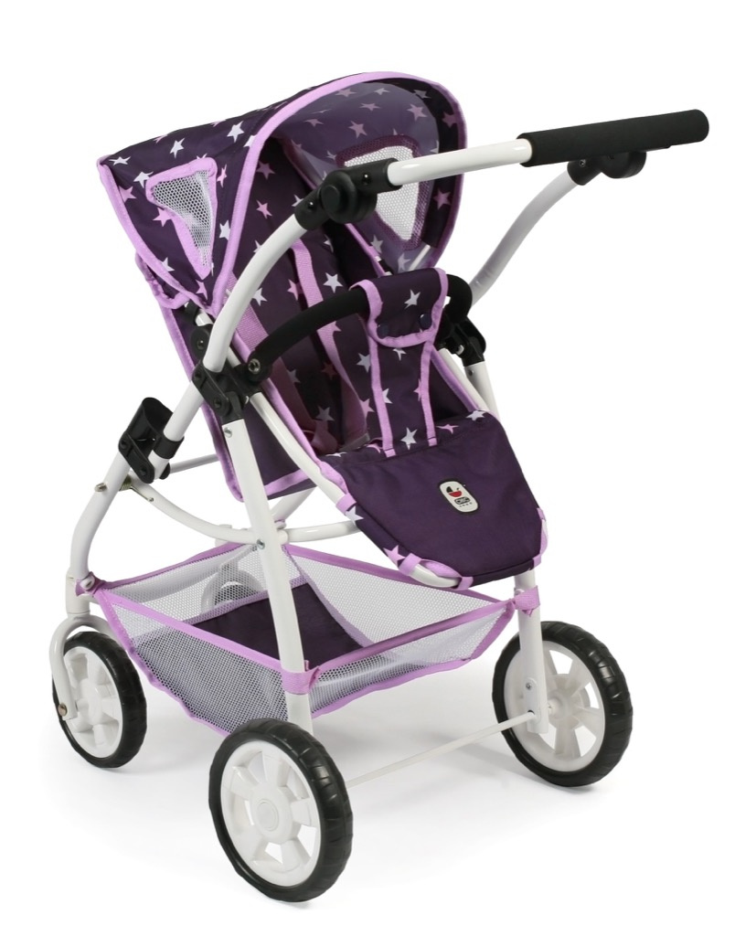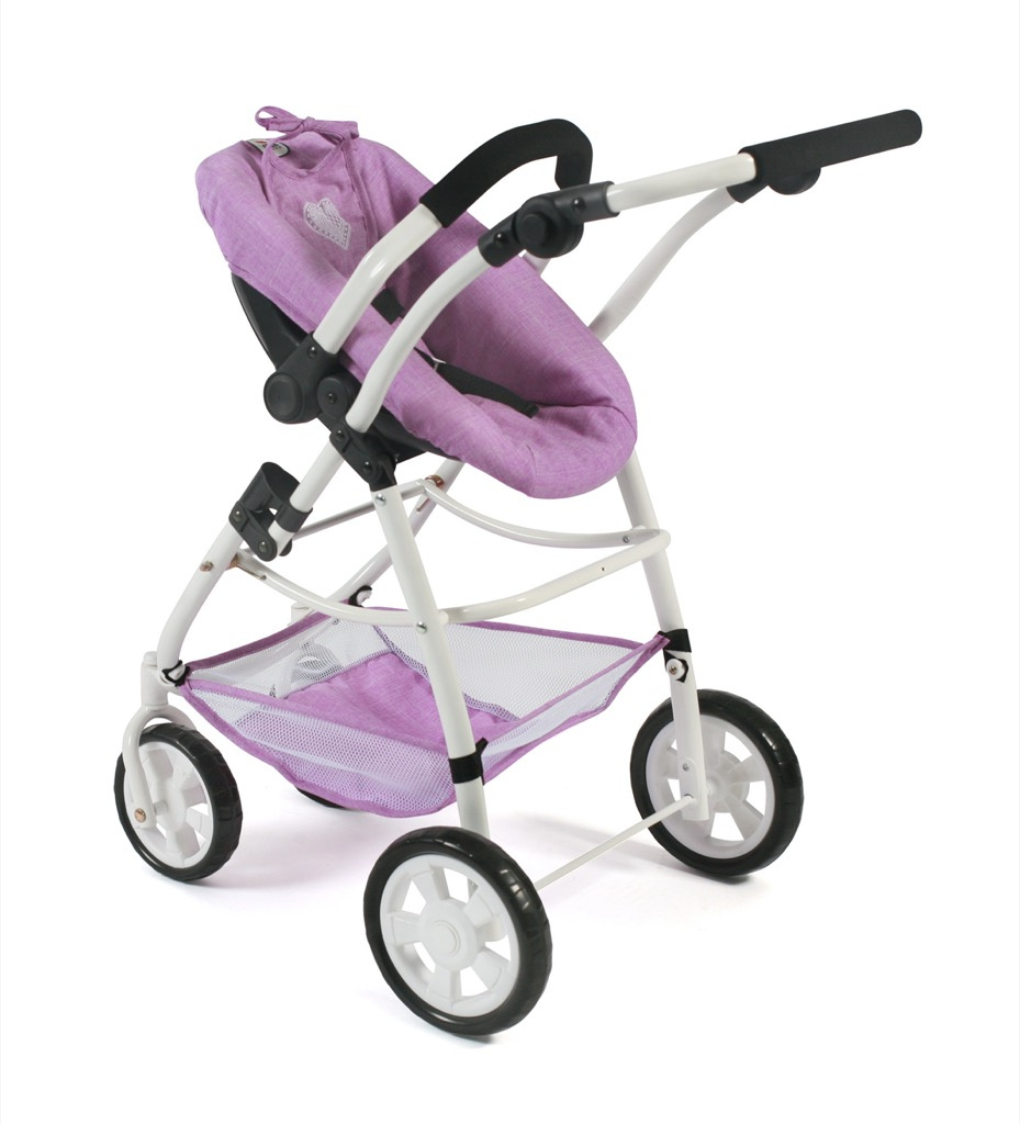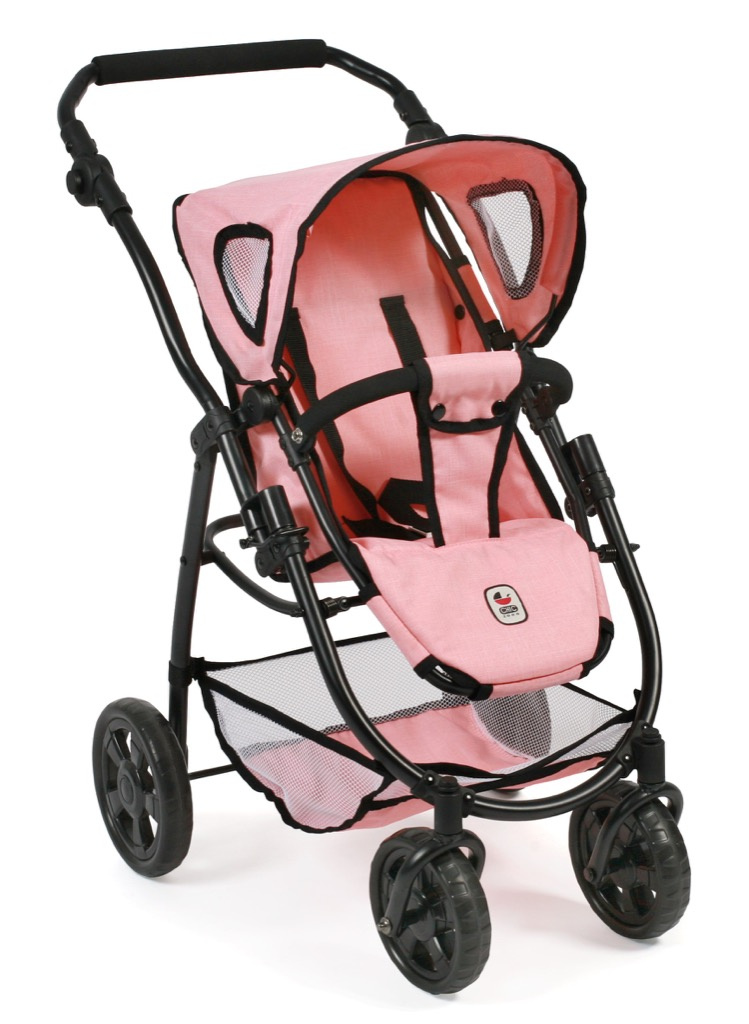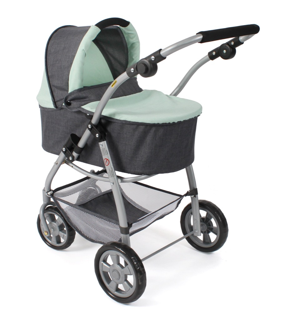 Korbičky lze složit na plocho pro transport nebo uskladnění. Sportovní korba má hrazdu a pás na upínání panenky. V hluboké korbě je slamníček. Korbička je vybavena ušima pro snadné přenášení, autosedačka je vybavena klasickým madlem, jako je to u sedaček pro dětská miminka. Přední kolečka se otáčejí kolem svislé osy. Kočárek má nastavitelnou rukojeť, samozřejmostí je síťka na drobnosti ve spodu kostry.