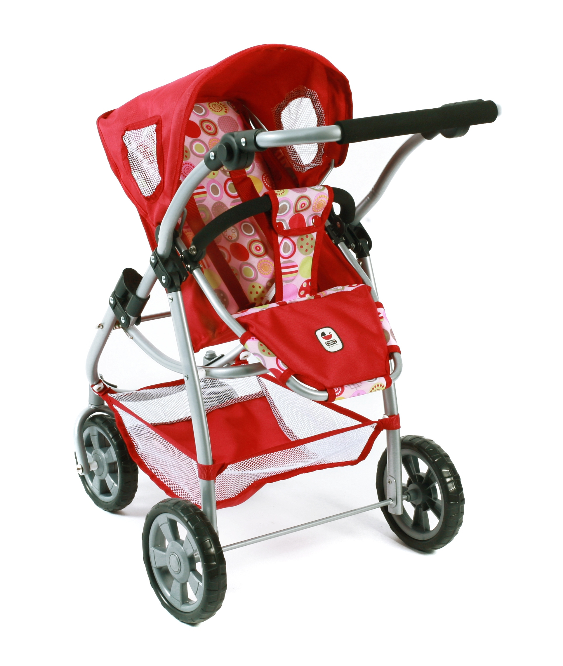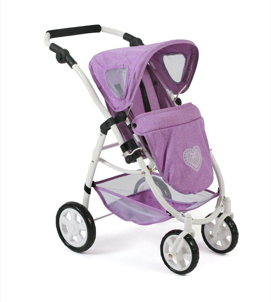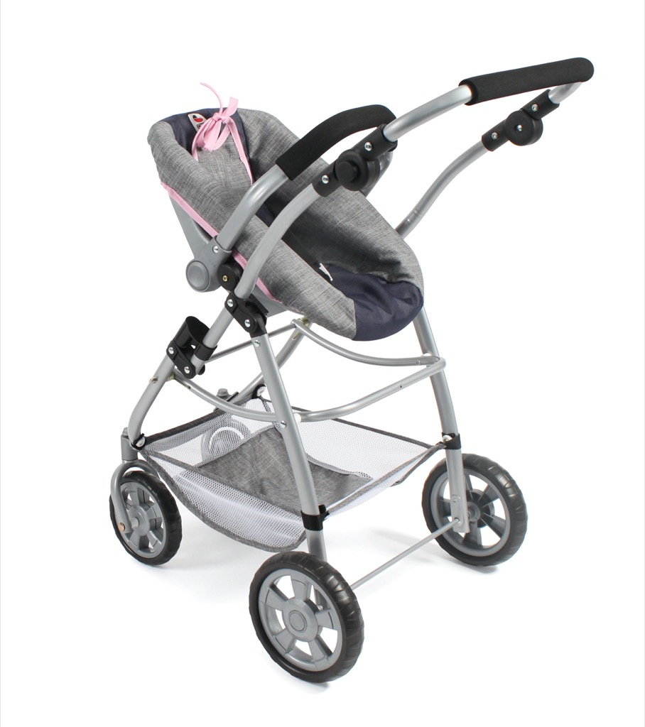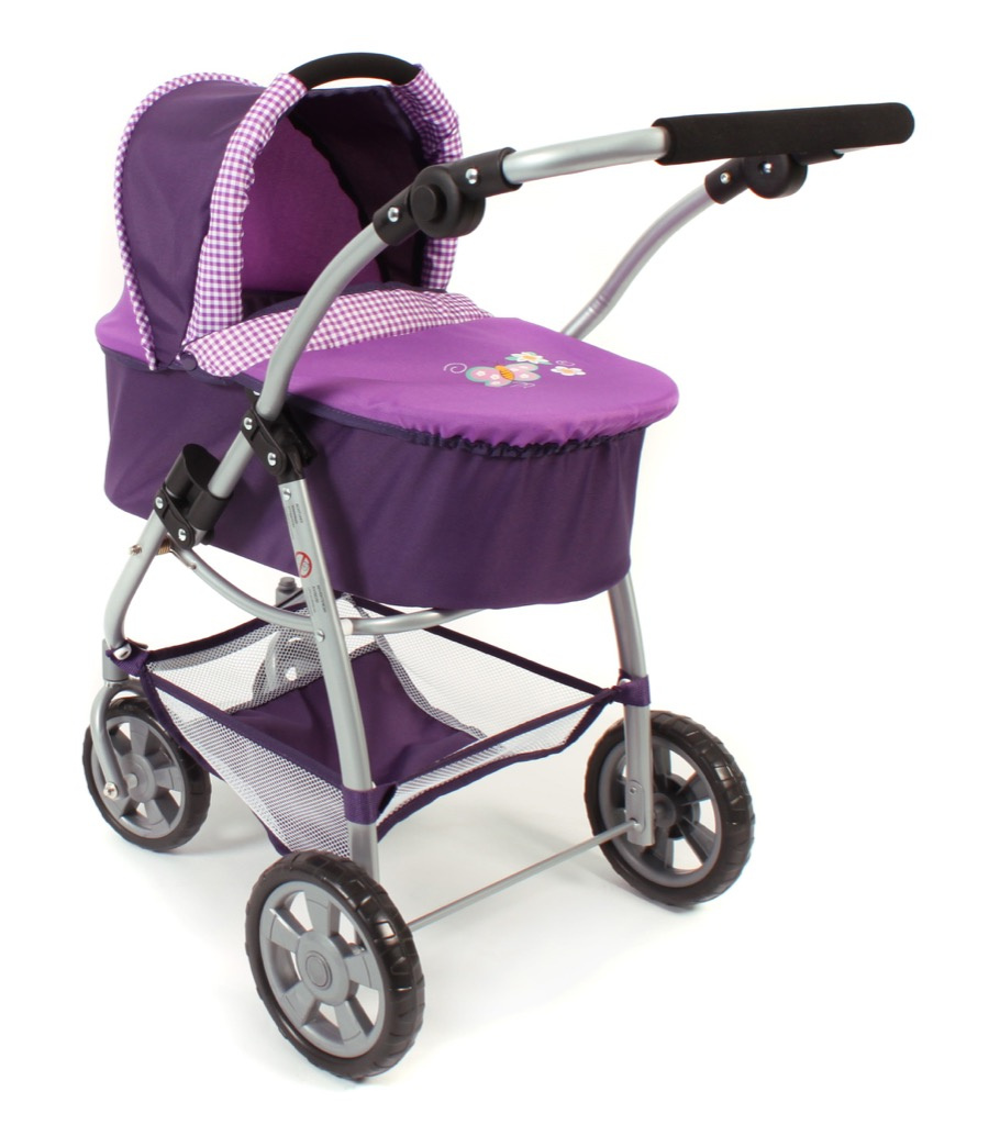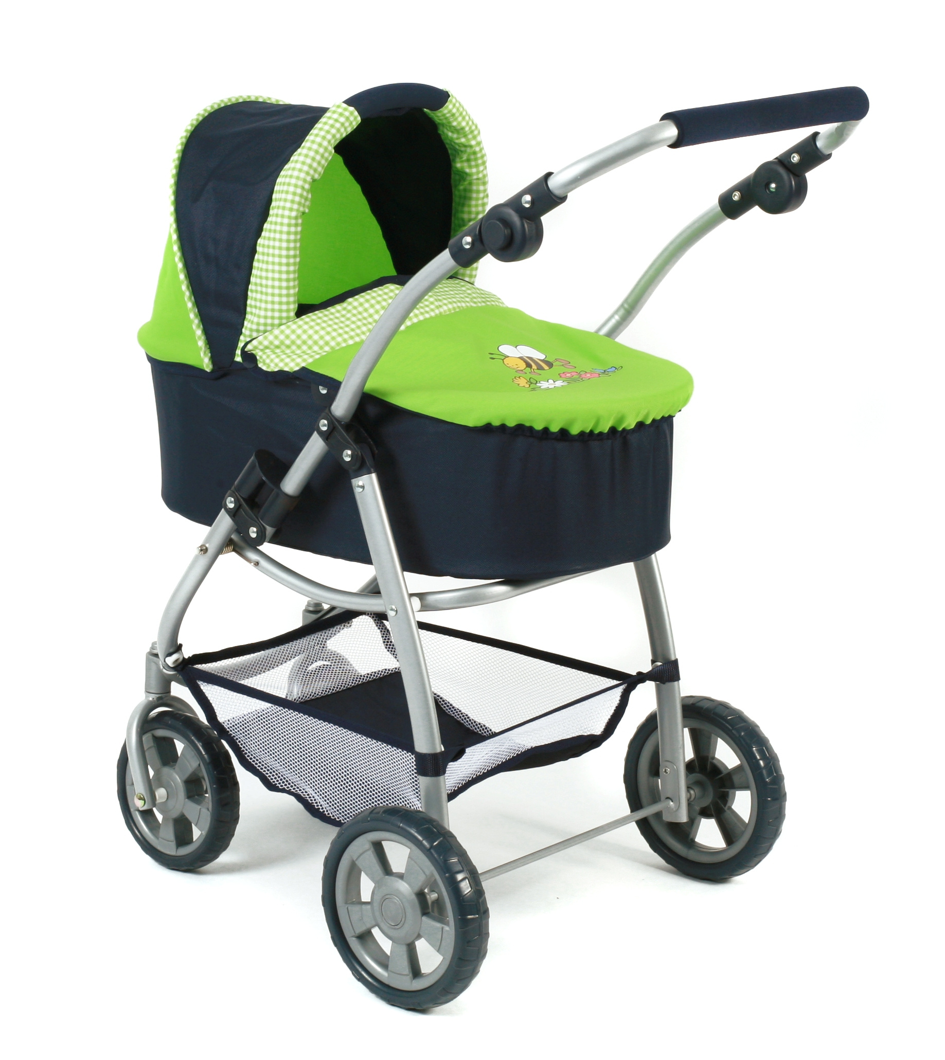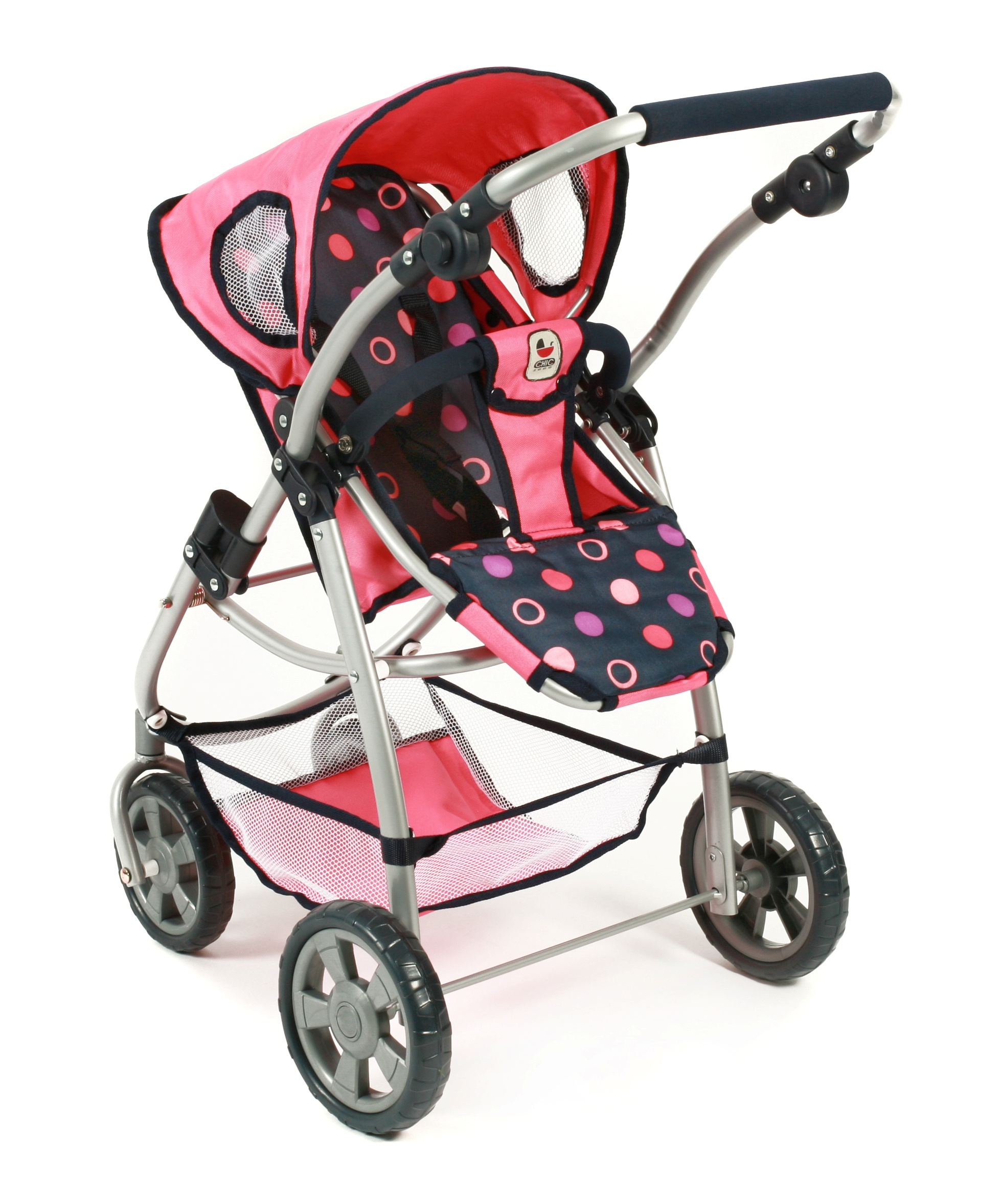 Korbičky lze složit na plocho pro transport nebo uskladnění. Sportovní korba má hrazdu a pás na upínání panenky. V hluboké korbě je slamníček. Korbička je vybavena ušima pro snadné přenášení, autosedačka je vybavena klasickým madlem, jako je to u sedaček pro dětská miminka. Přední kolečka se otáčejí kolem svislé osy. Kočárek má nastavitelnou rukojeť, samozřejmostí je síťka na drobnosti ve spodu kostry.
