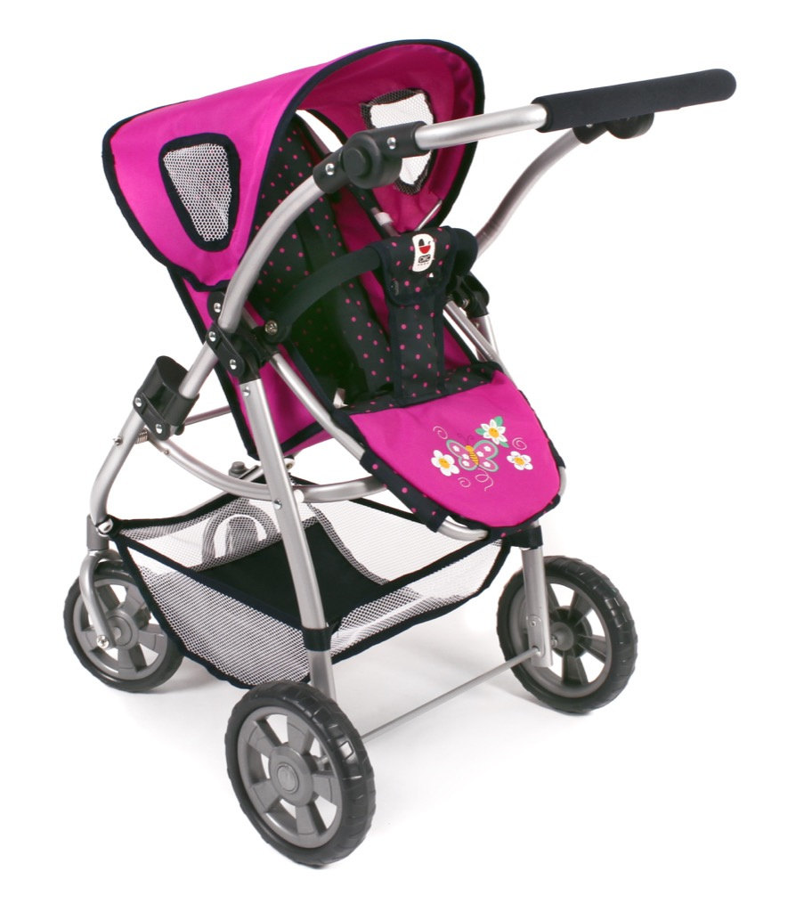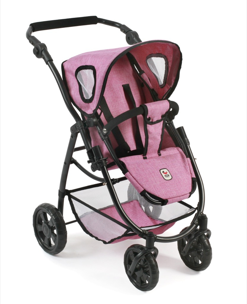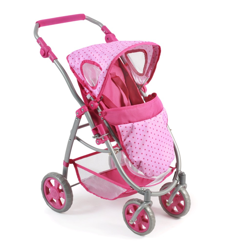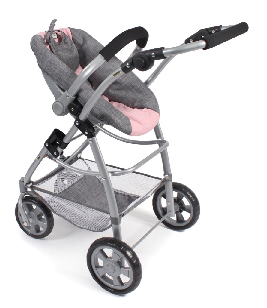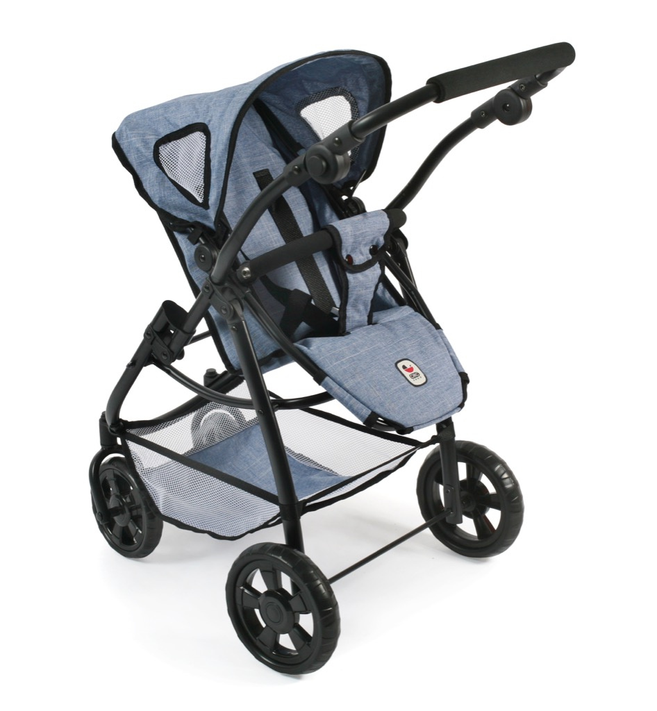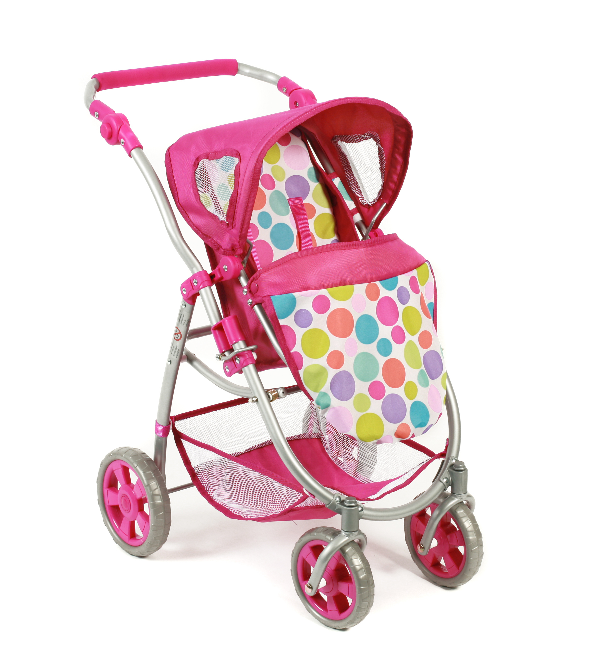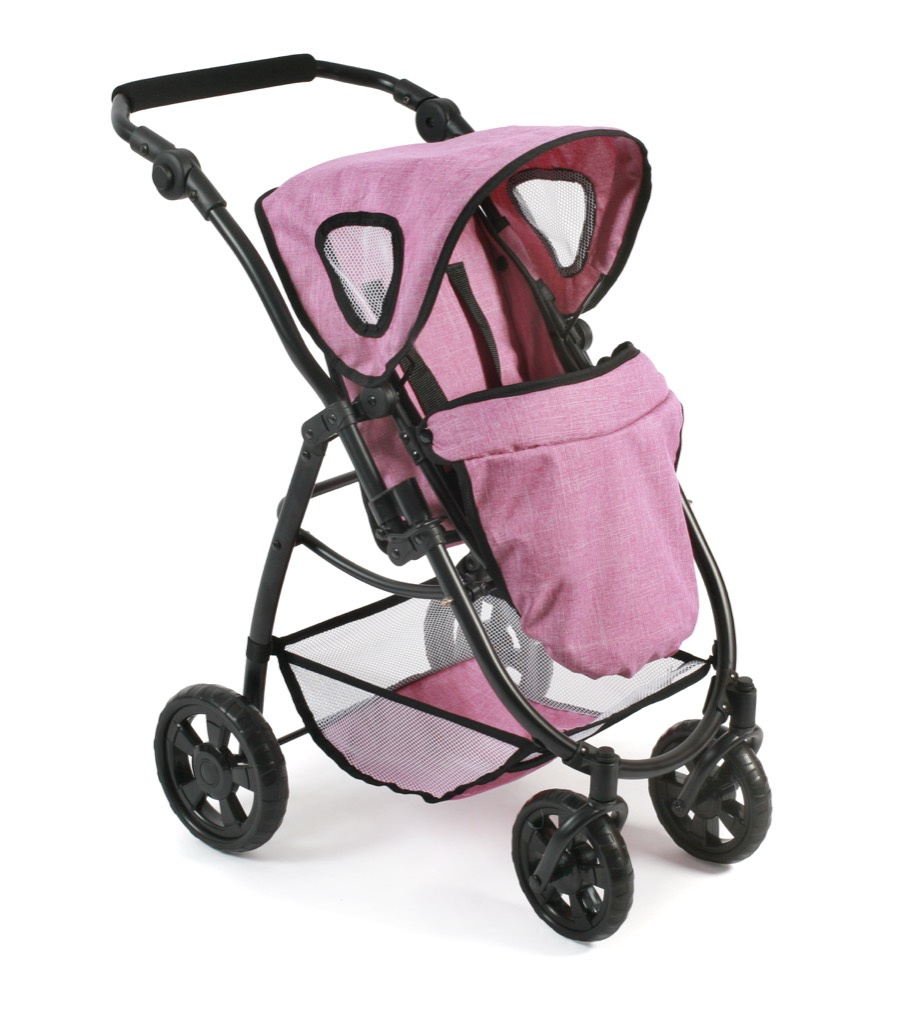 Korbičky lze složit na plocho pro transport nebo uskladnění. Sportovní korba má hrazdu a pás na upínání panenky. V hluboké korbě je slamníček. Korbička je vybavena ušima pro snadné přenášení, autosedačka je vybavena klasickým madlem, jako je to u sedaček pro dětská miminka. Přední kolečka se otáčejí kolem svislé osy. Kočárek má nastavitelnou rukojeť, samozřejmostí je síťka na drobnosti ve spodu kostry.