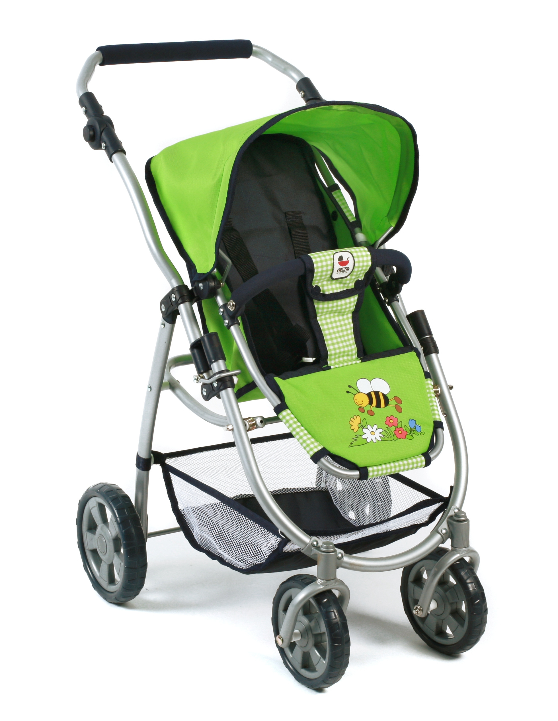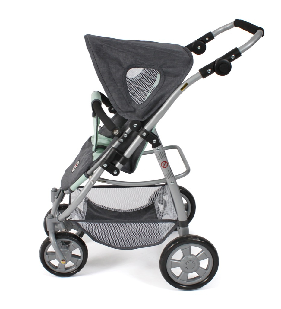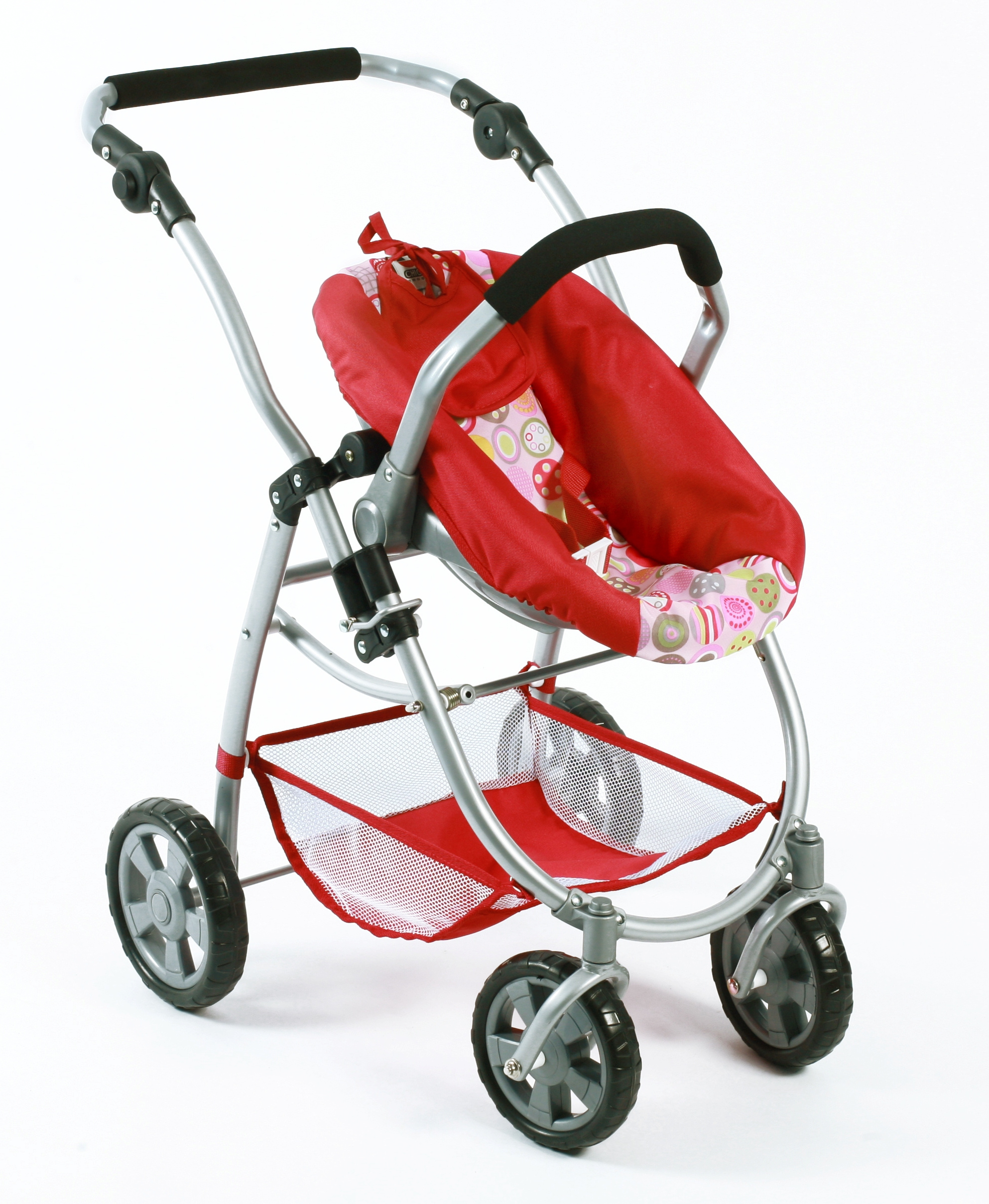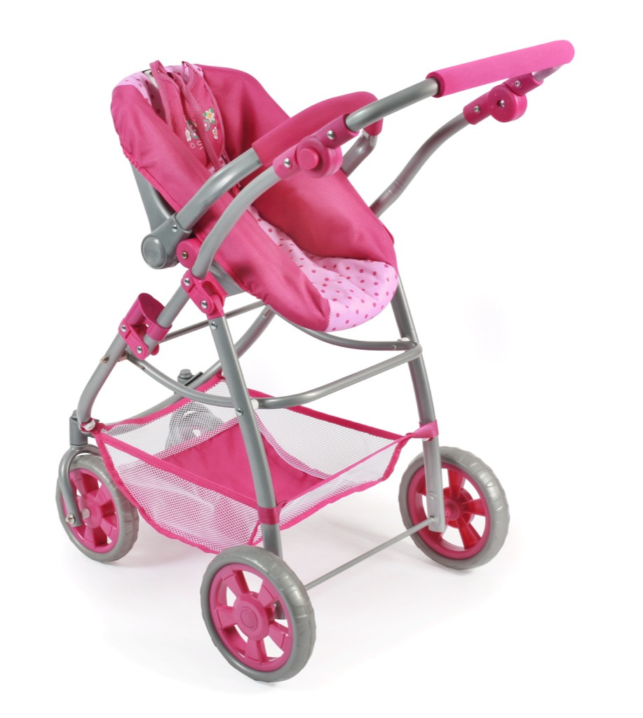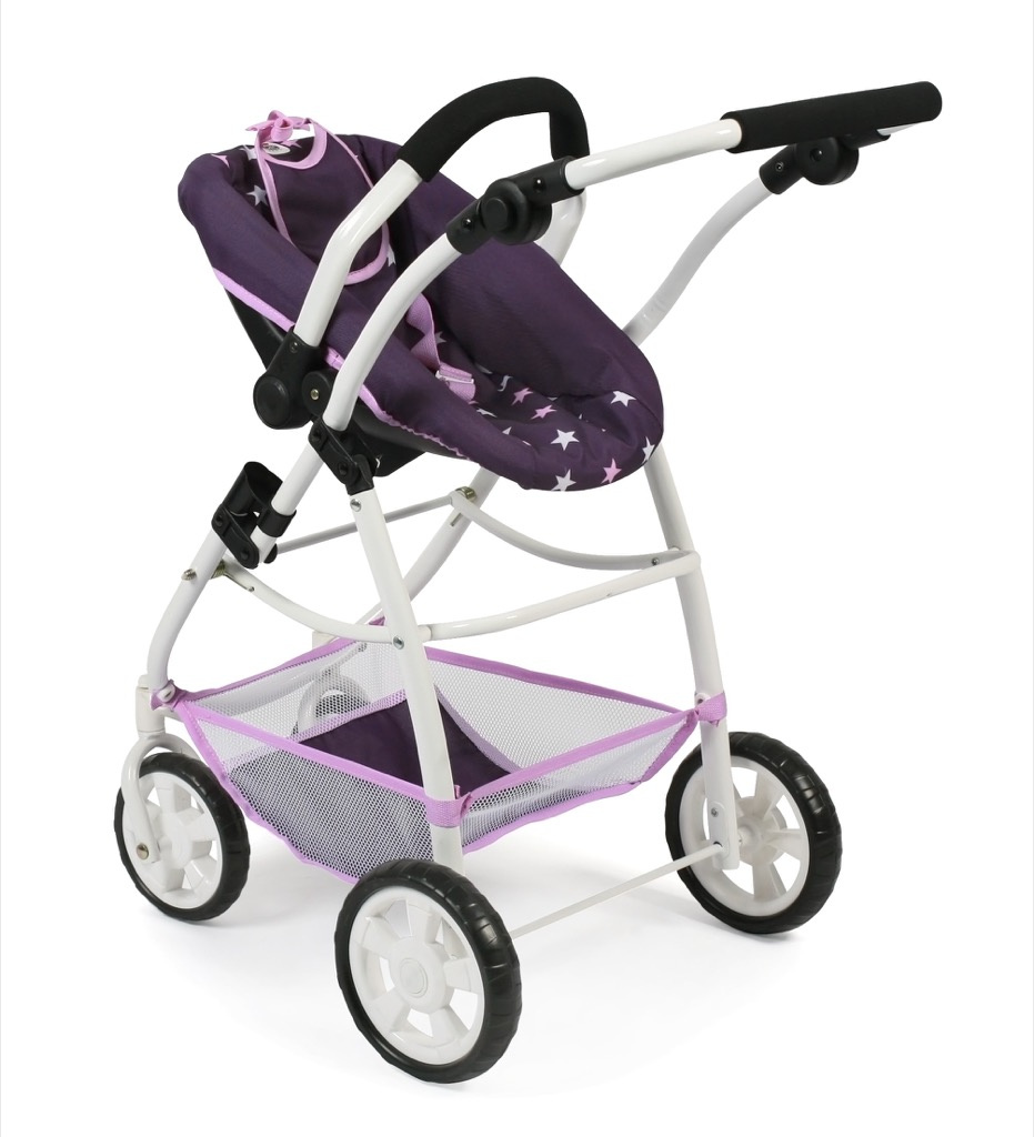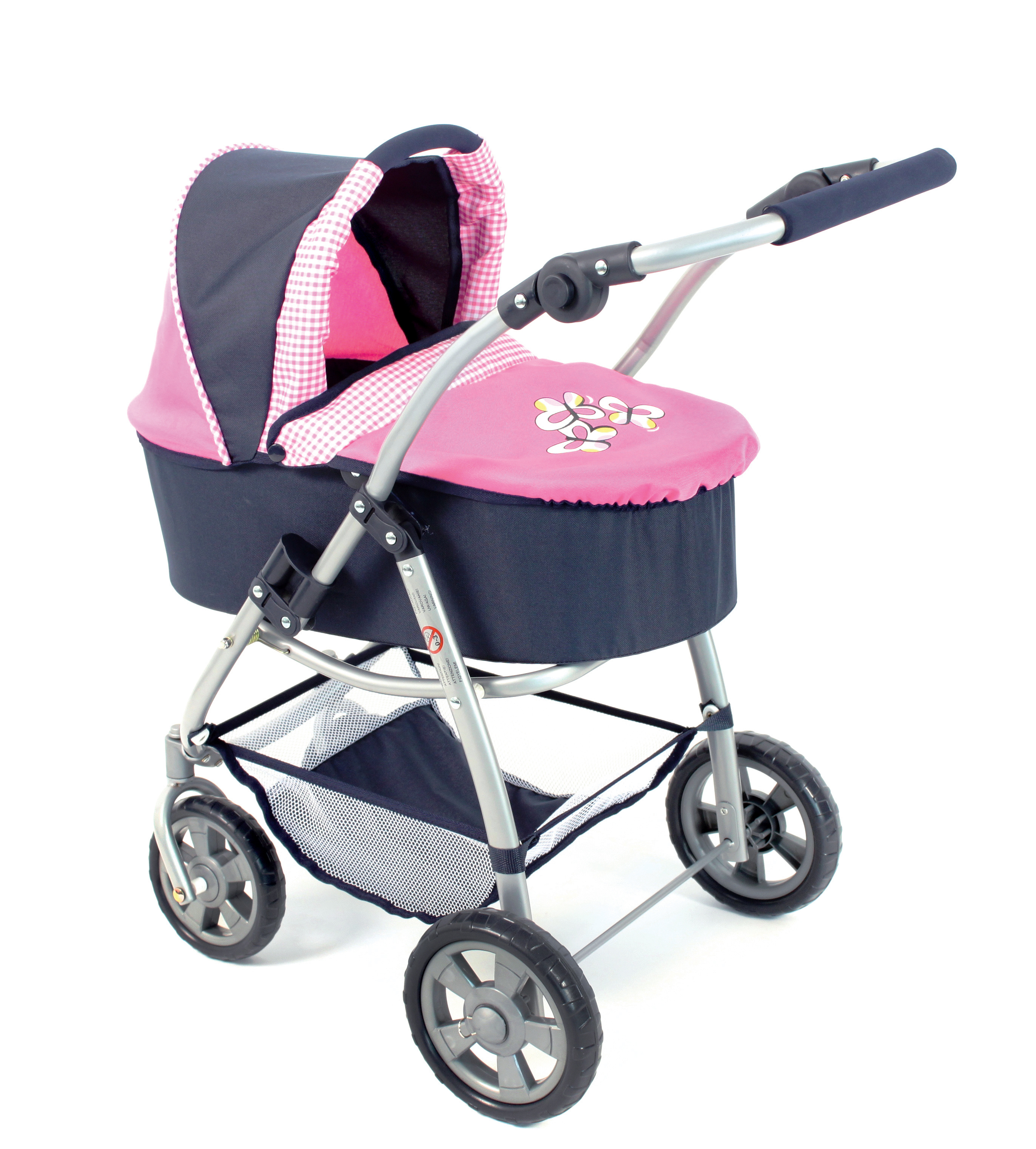 Korbičky lze složit na plocho pro transport nebo uskladnění. Sportovní korba má hrazdu a pás na upínání panenky. V hluboké korbě je slamníček. Korbička je vybavena ušima pro snadné přenášení, autosedačka je vybavena klasickým madlem, jako je to u sedaček pro dětská miminka. Přední kolečka se otáčejí kolem svislé osy. Kočárek má nastavitelnou rukojeť, samozřejmostí je síťka na drobnosti ve spodu kostry.