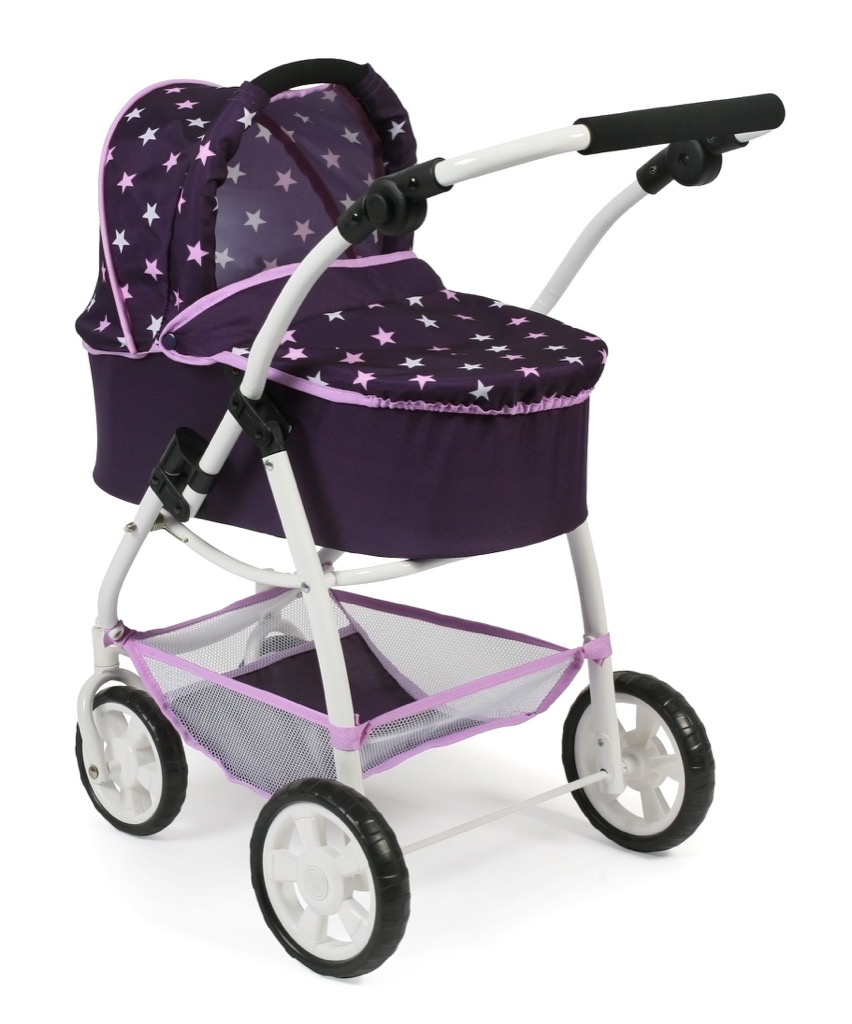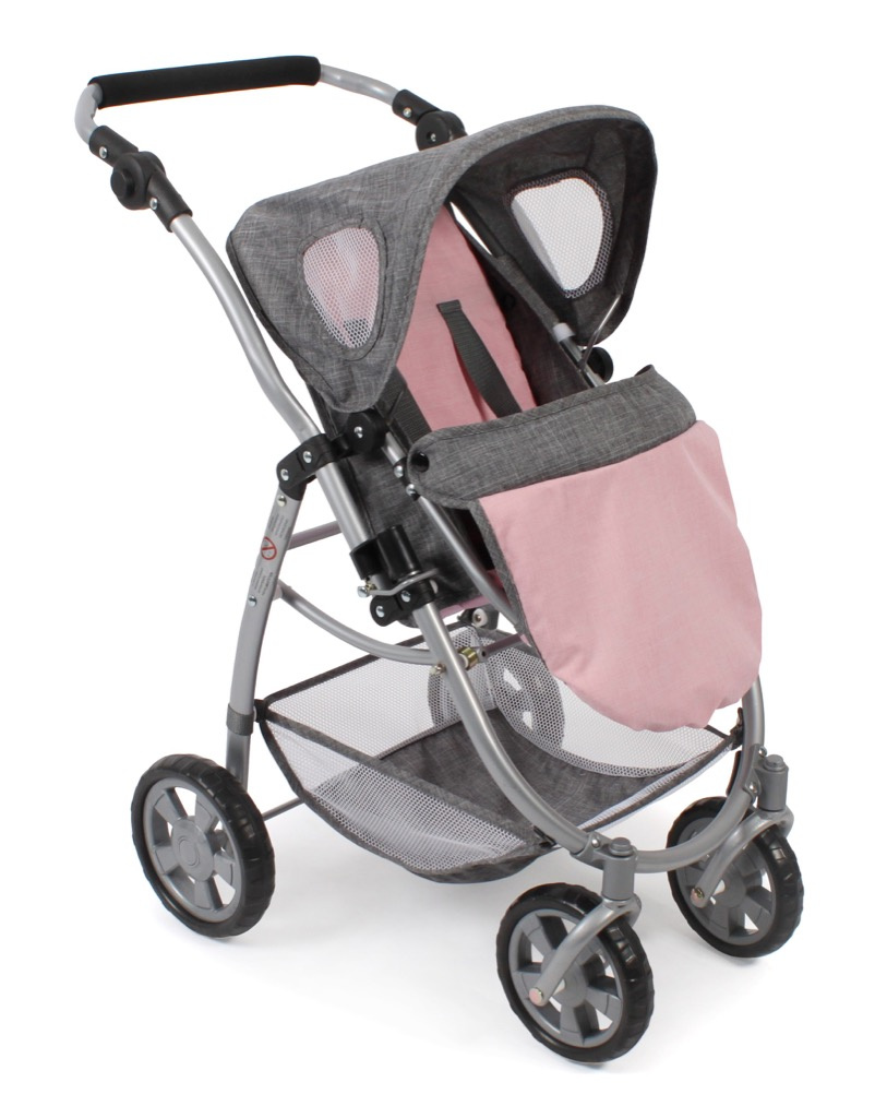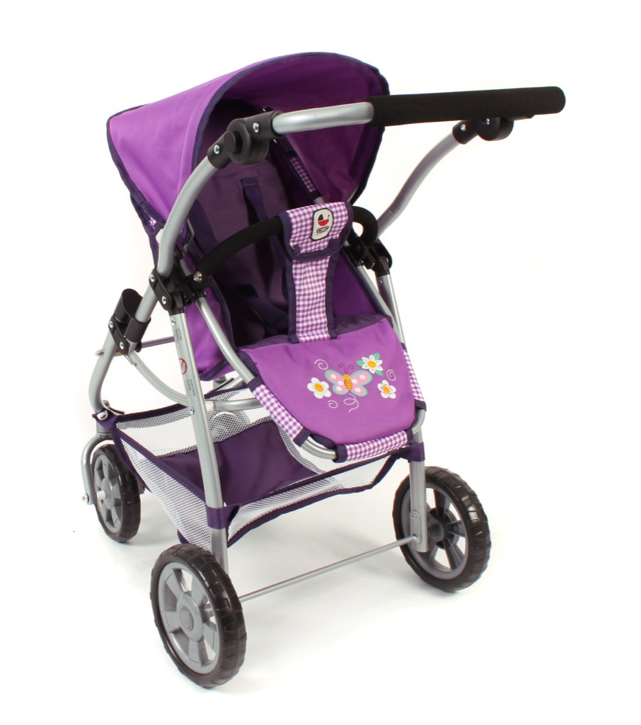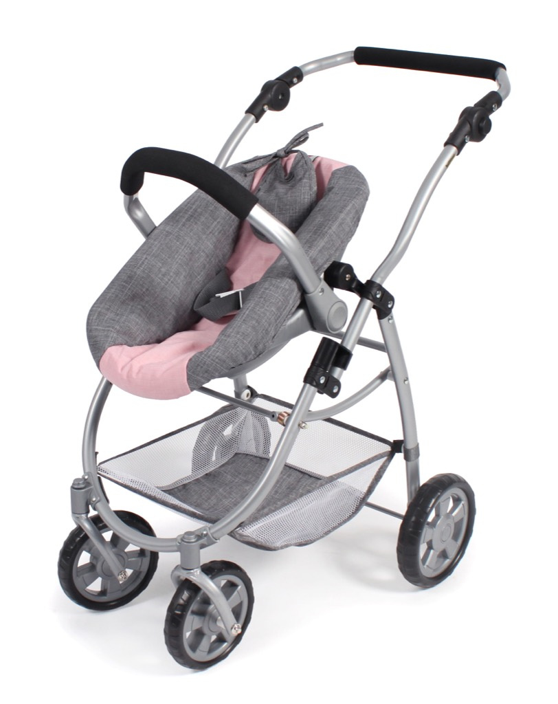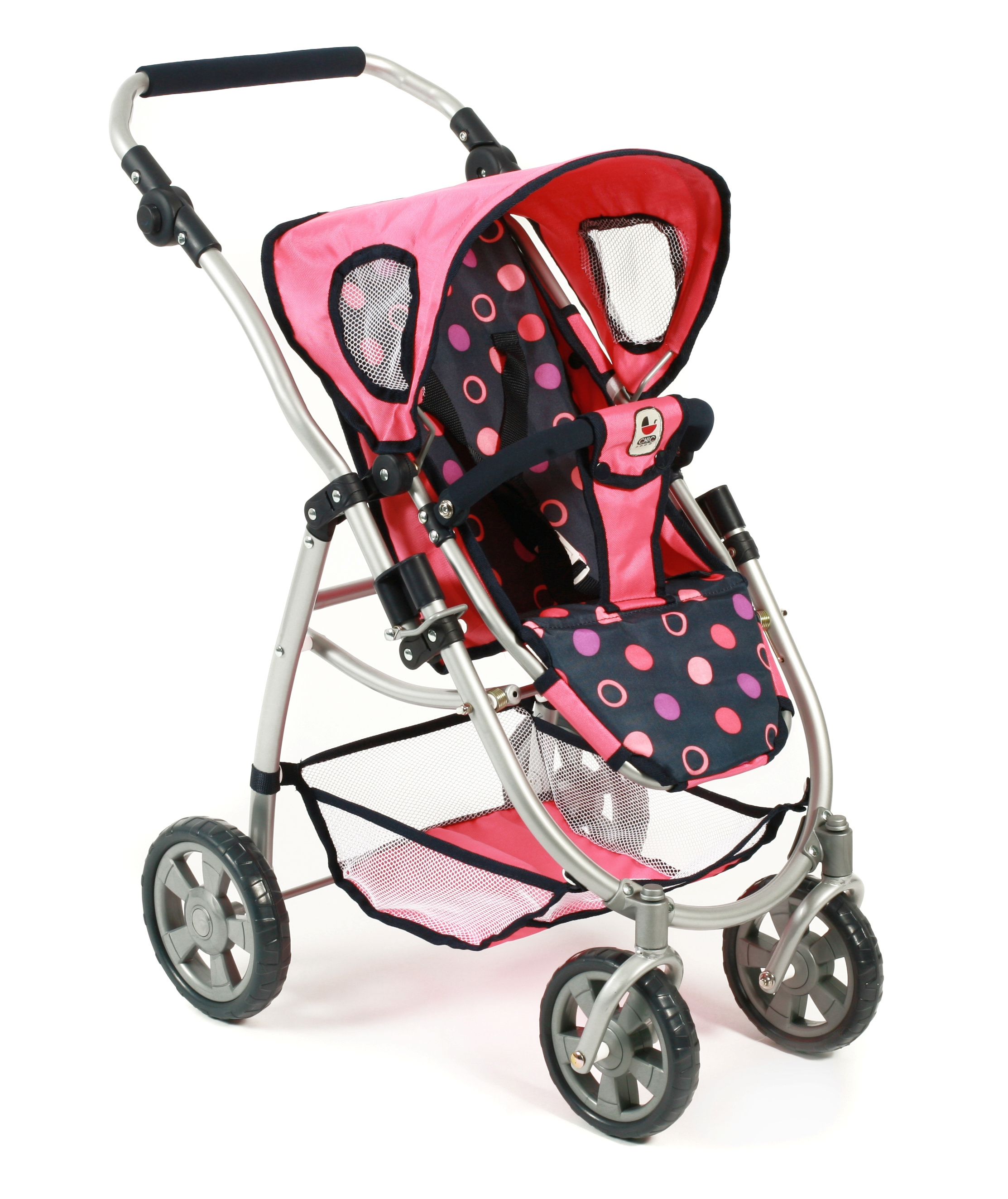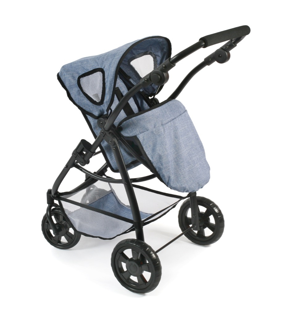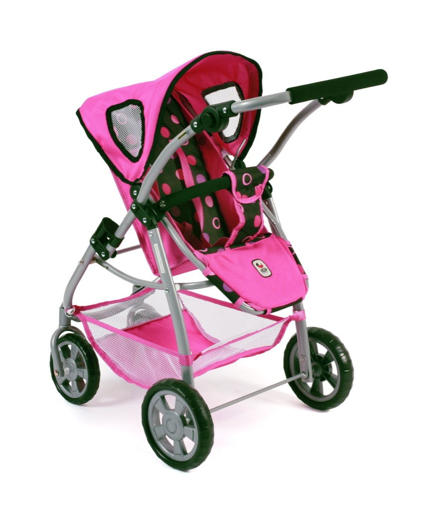 Korbičky lze složit na plocho pro transport nebo uskladnění. Sportovní korba má hrazdu a pás na upínání panenky. V hluboké korbě je slamníček. Korbička je vybavena ušima pro snadné přenášení, autosedačka je vybavena klasickým madlem, jako je to u sedaček pro dětská miminka. Přední kolečka se otáčejí kolem svislé osy. Kočárek má nastavitelnou rukojeť, samozřejmostí je síťka na drobnosti ve spodu kostry.